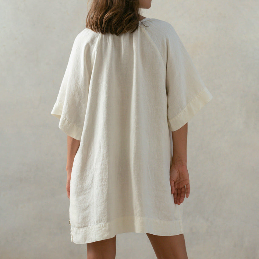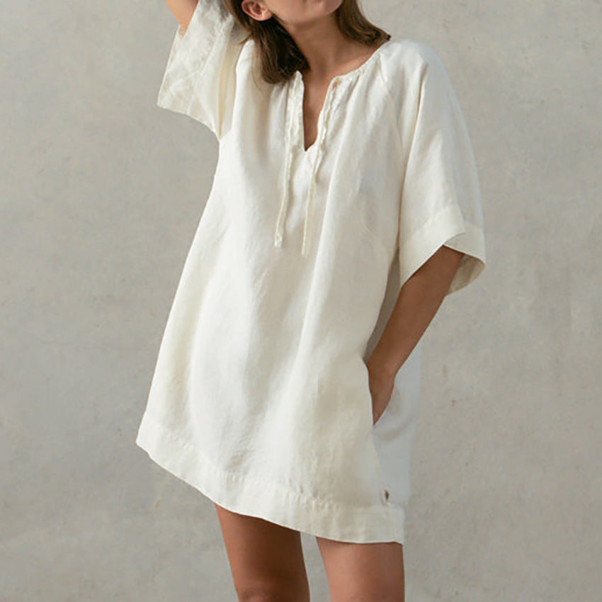 Opdag vores stilfulde og behagelige dame linnedkjole, der forener perfekt komfort og afslappethed. Denne kjole lavet af høj kvalitets, åndbart linned sørger for en behagelig bæreoplevelse, ideel til de varme dage i året.