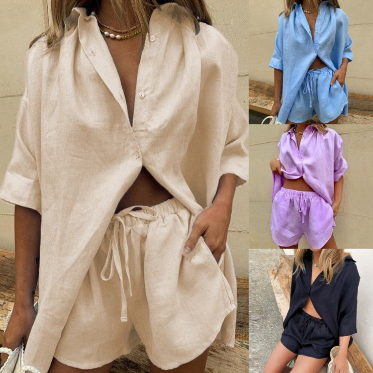 Oplev vores stilfulde og komfortable damers afslappede linnedskjorte med shorts fra Stilla. Dette sæt kombinerer elegance og hverdagsegnethed til årets varme dage.