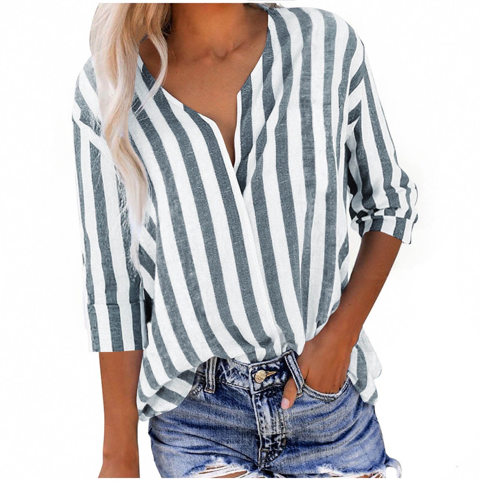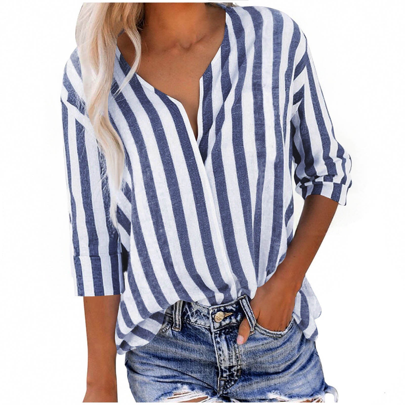 Opdag Stilla' damecasual linnedbluse med stribemønster og 3/4-ærmer – den perfekte følgesvend til et afslappet, sommerligt look.