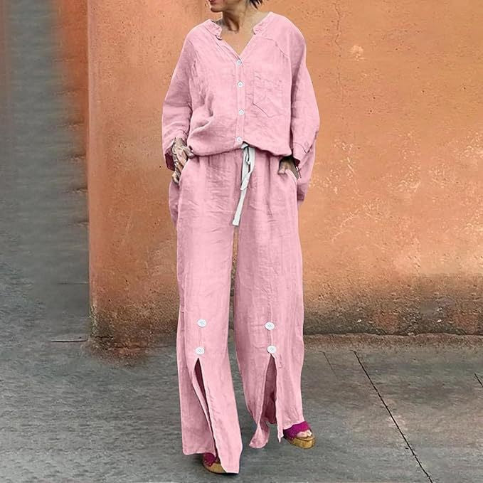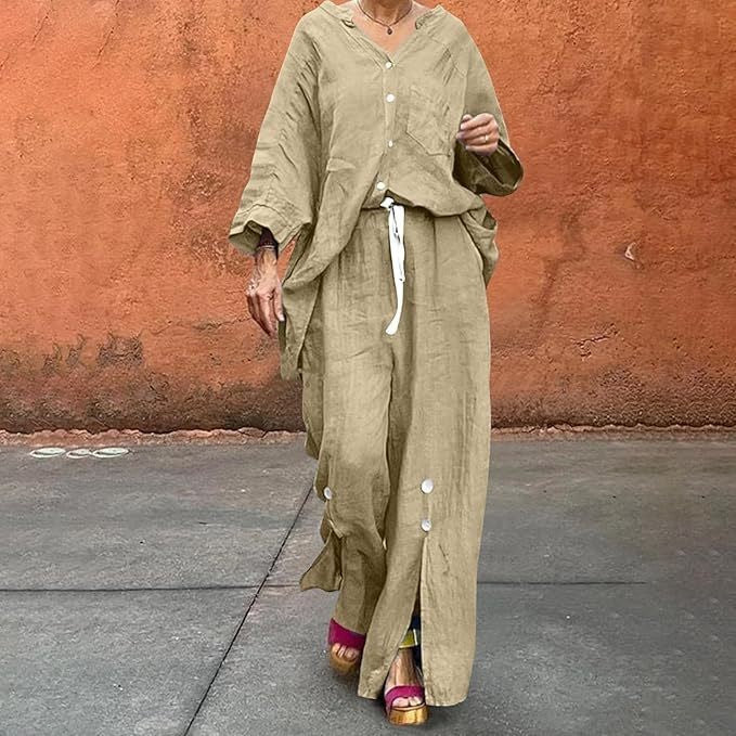 Det perfekte outfit til afslappede sommerdage – vores damer afslappet linned sæt er stilfuldt og komfortabelt på samme tid. Fremstillet af høj kvalitet, åndbart linned, giver det dig maksimal bærekomfort.
