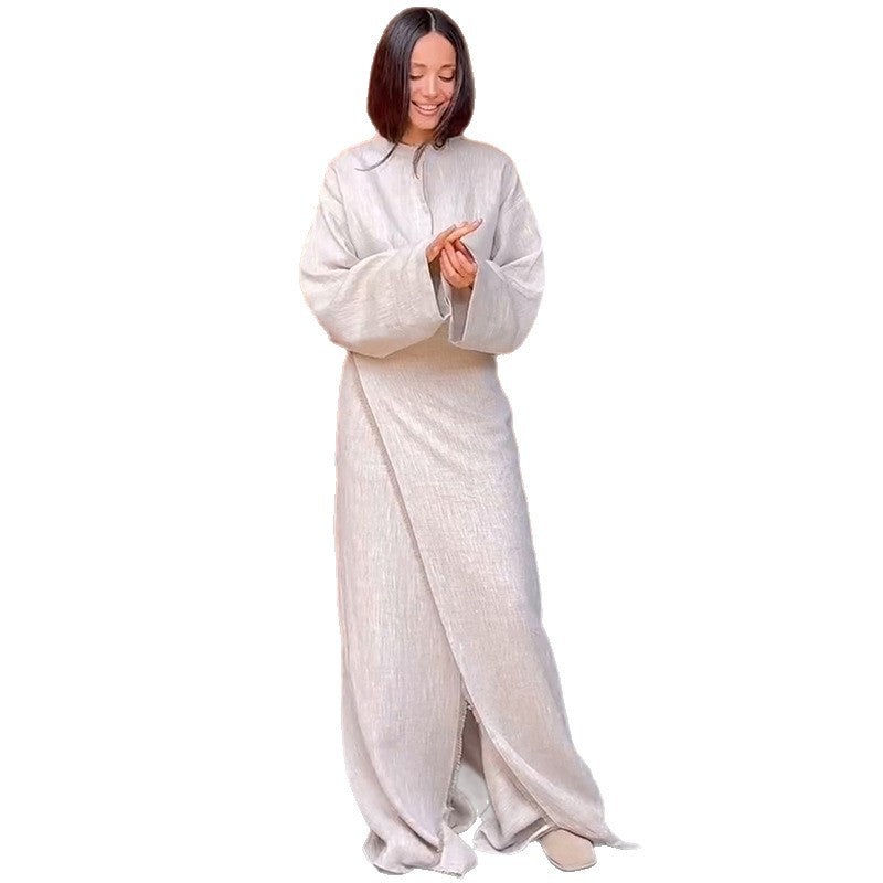 Oplev den ultimative komfort og stil med vores dames linned to-delt sæt. Dette ensemble kombinerer elegance med afslappet raffinement og er ideelt til forskellige anledninger.