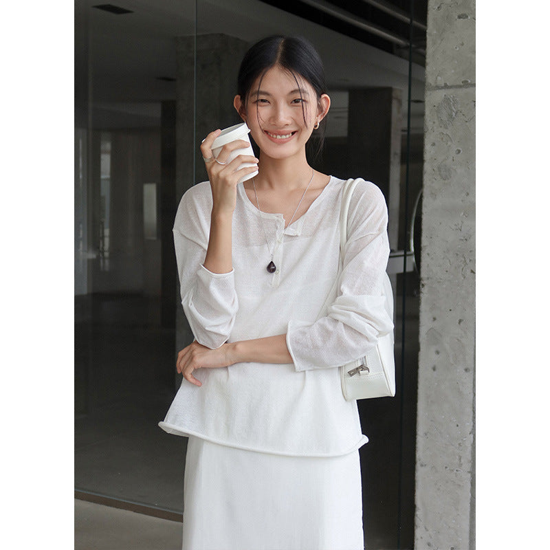 Opdag vores damers afslappede longsleeve-top med praktisk knaplukning, der perfekt forener stil og komfort. Dette top er ideelt til alsidige outfits, hvad enten det er på kontoret eller i fritiden.
