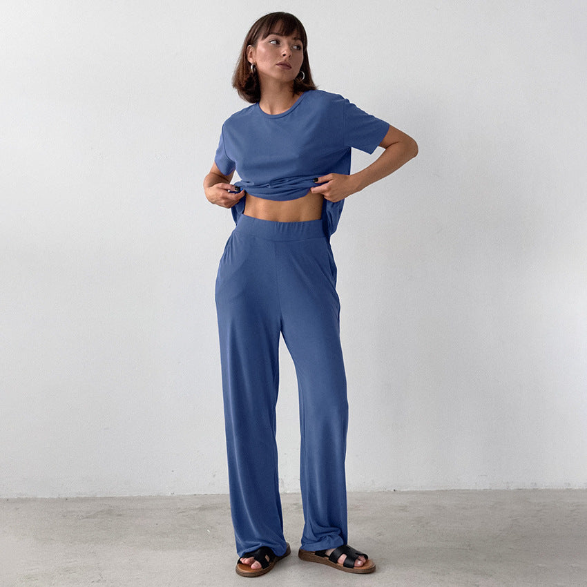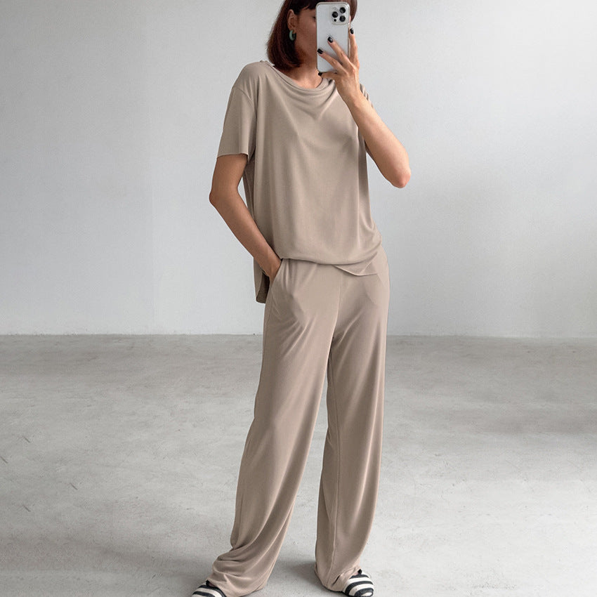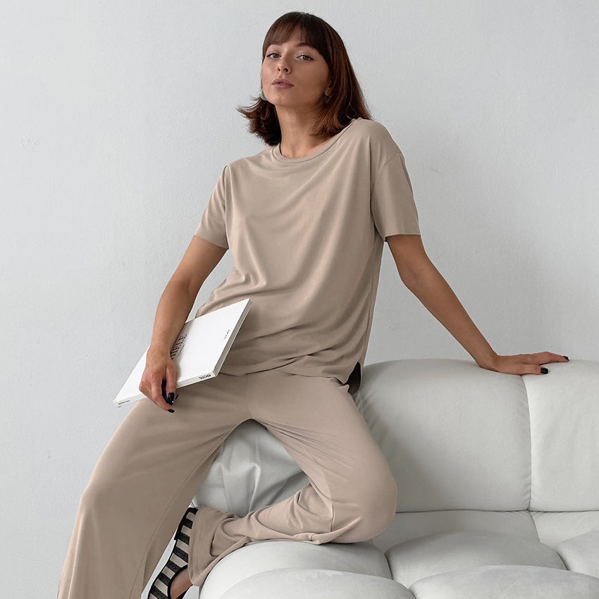 Oplev den perfekte kombination af stil og komfort med vores kvinders afslappede lounge-sæt. Dette sæt består af en løs overdel og et komfortabelt, rummeligt par bukser, ideelt til afslappede dage derhjemme eller uformelle udflugter.