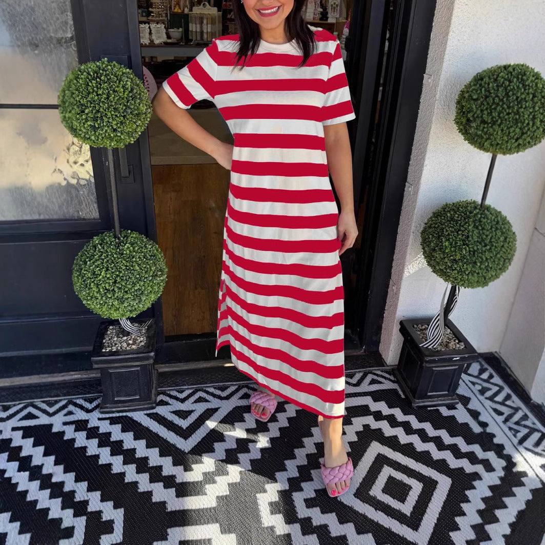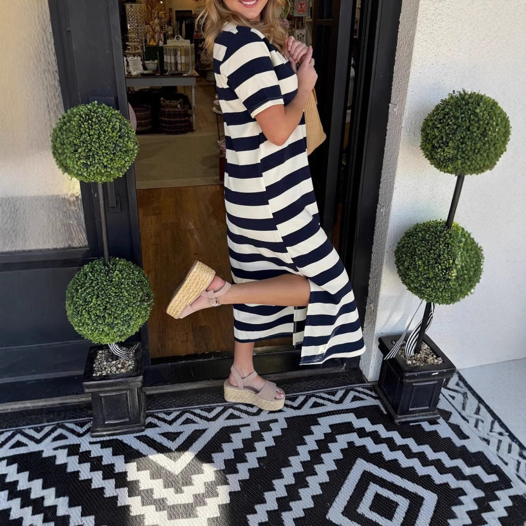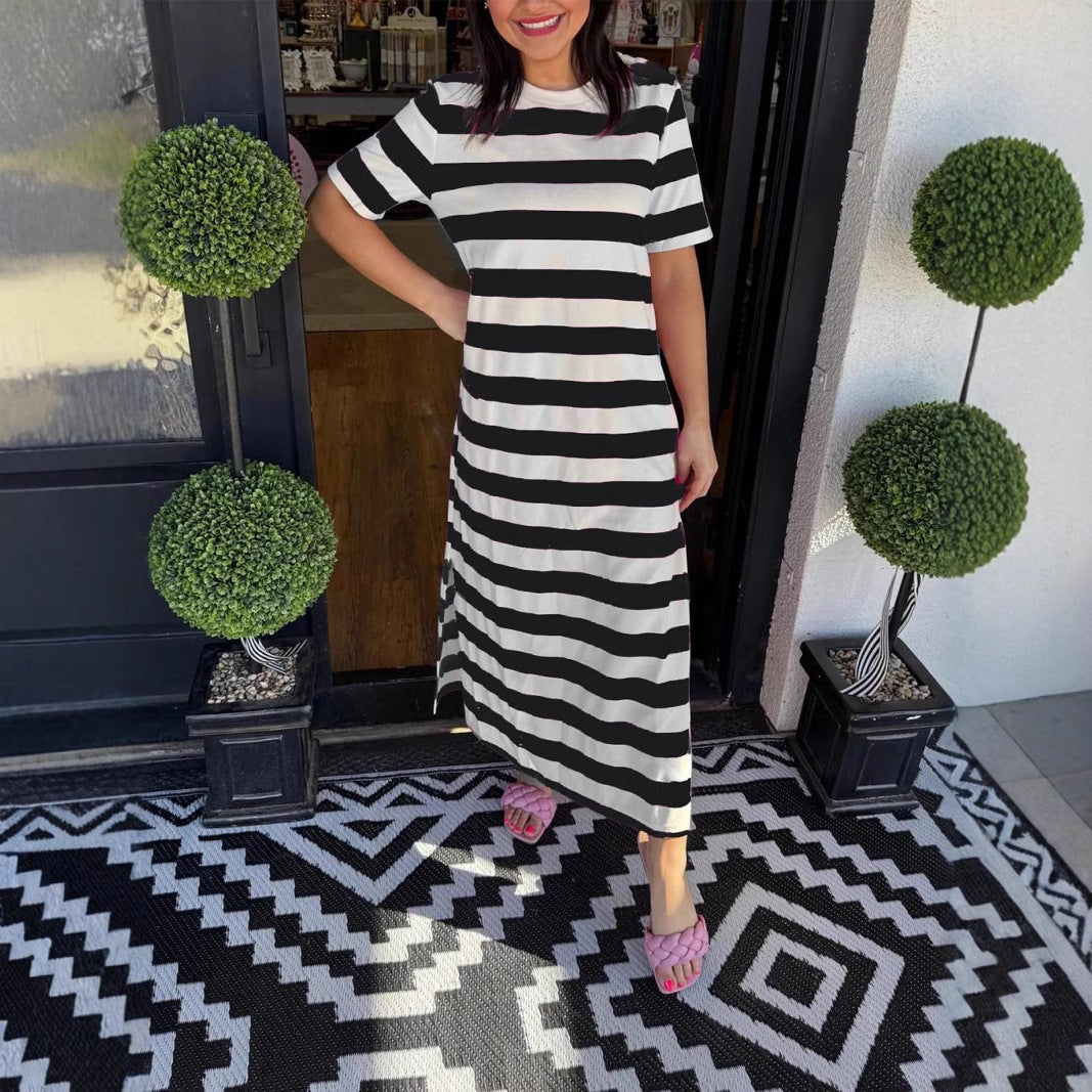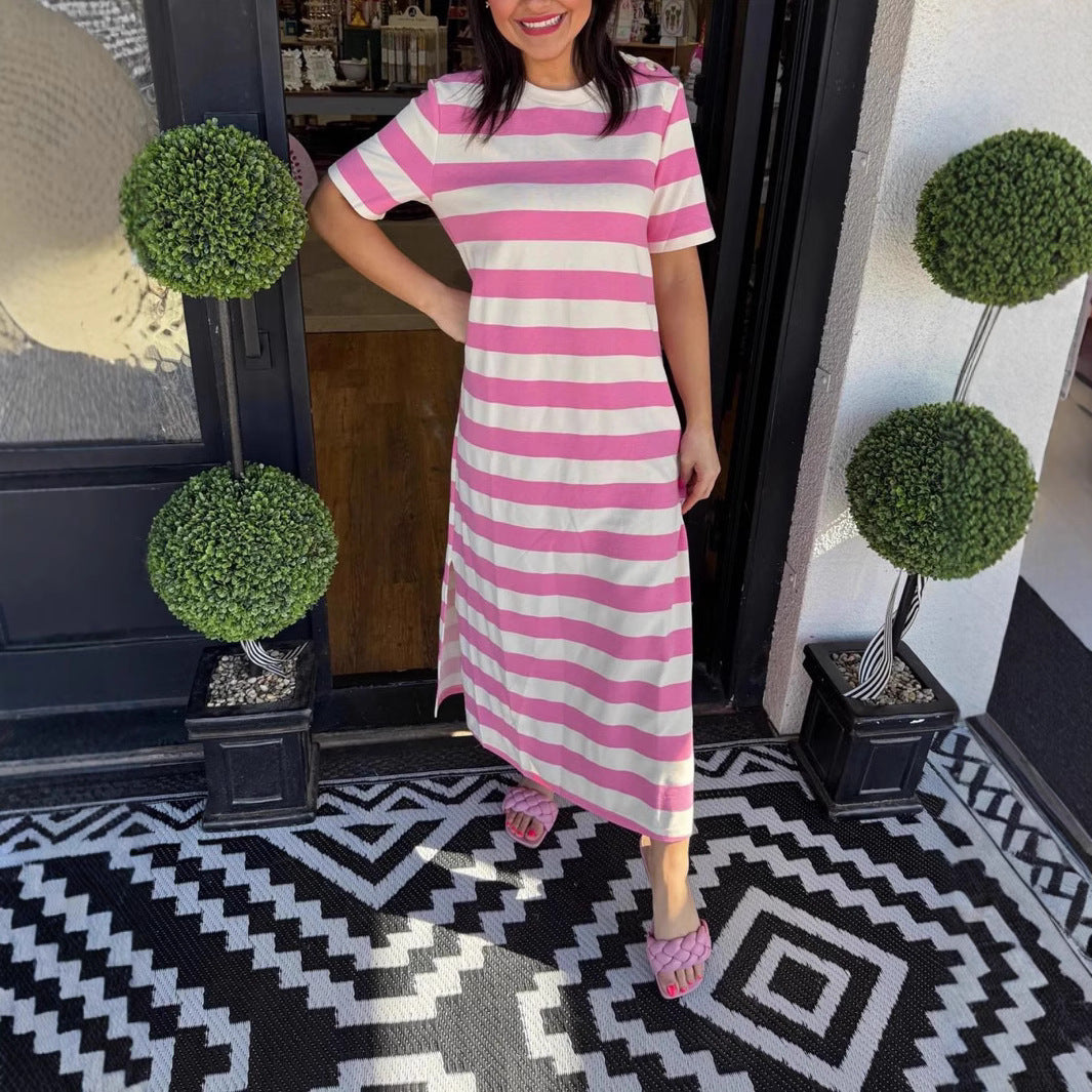 Opdag vores damesløs Maxikjole lavet af højkvalitets, blødt flydende bomuldsstof, perfekt til varme sommerdage. Kjolen kombinerer afslappet stil med komfort og er ideel til fritidsaktiviteter eller afslappede dage på stranden.
