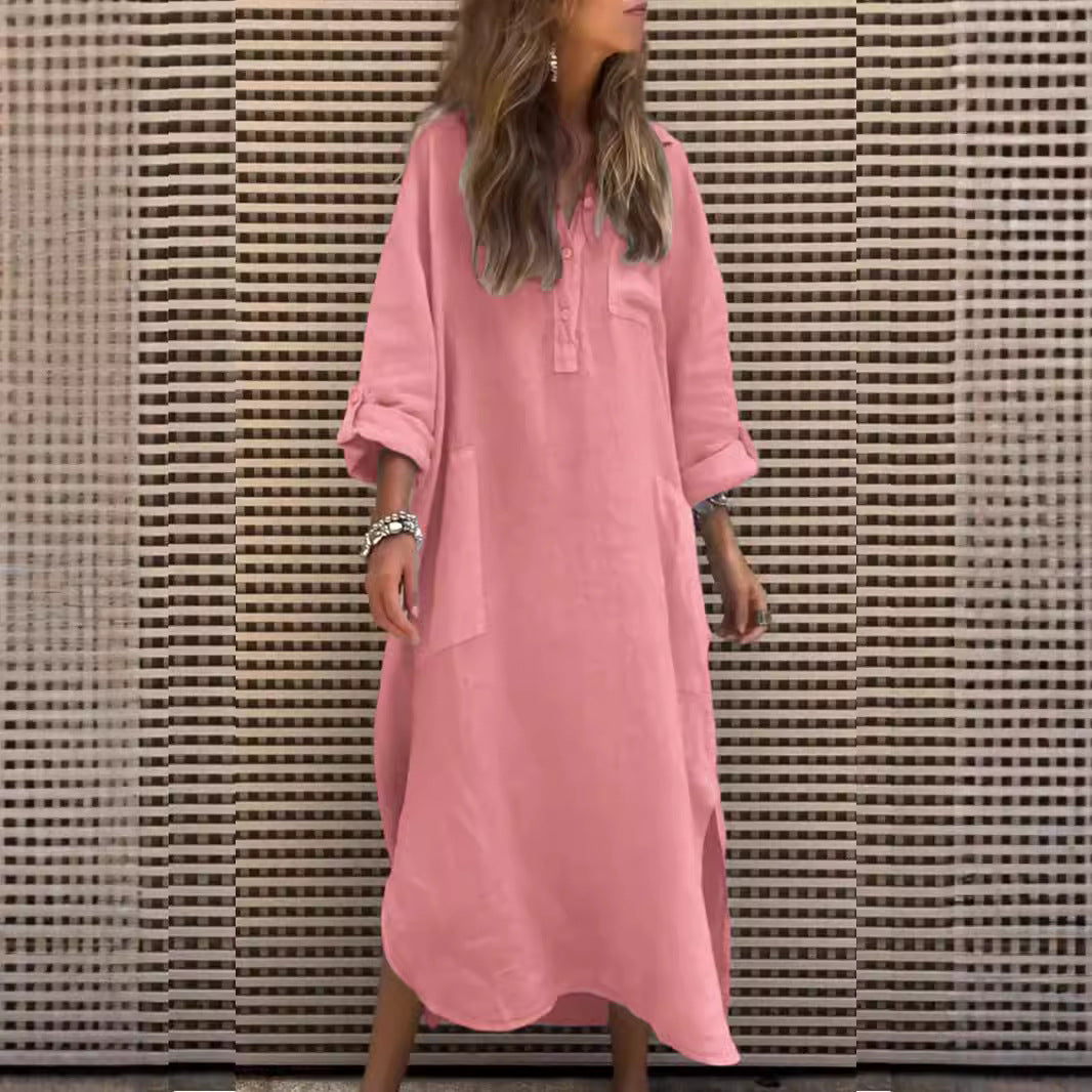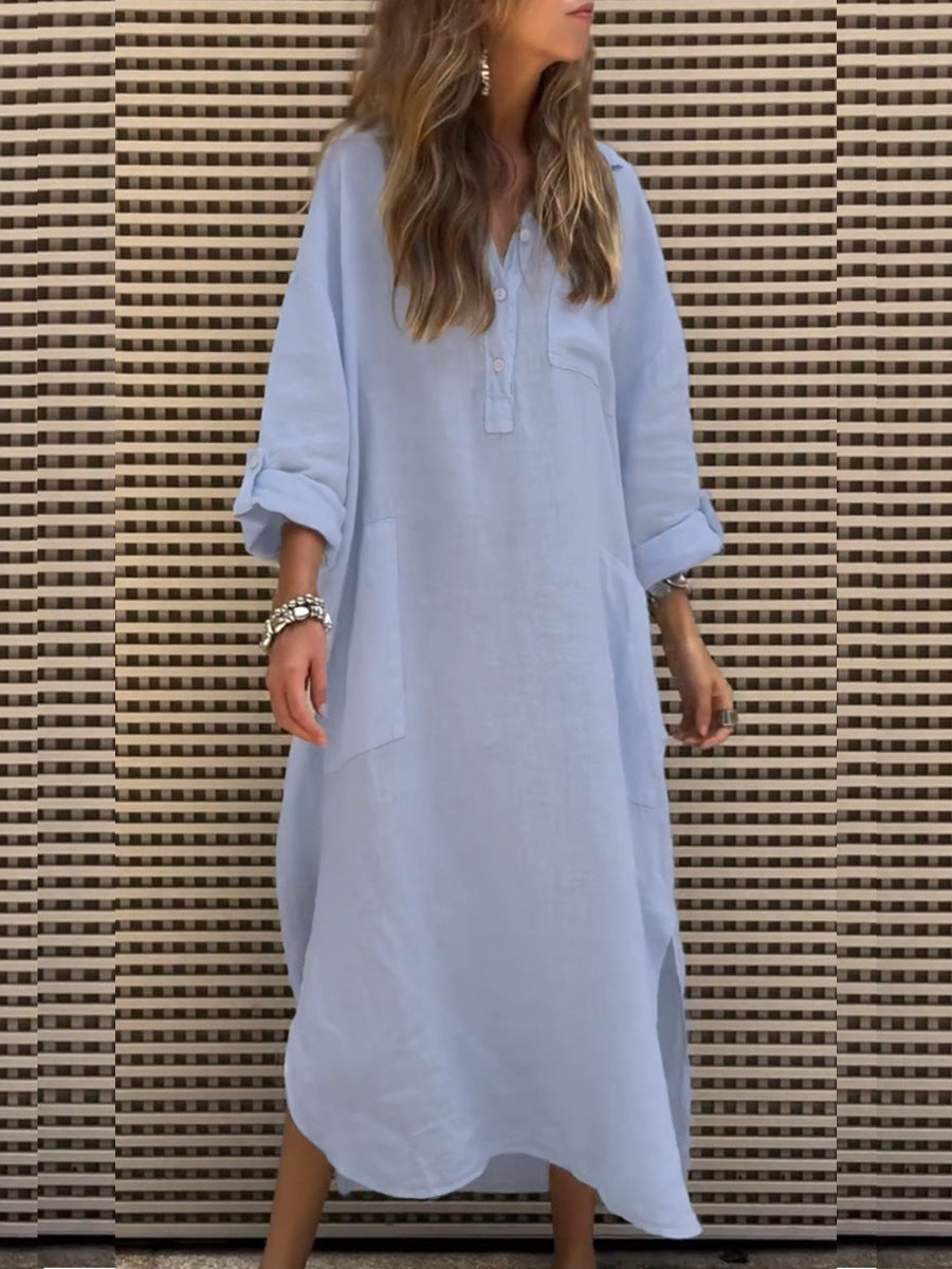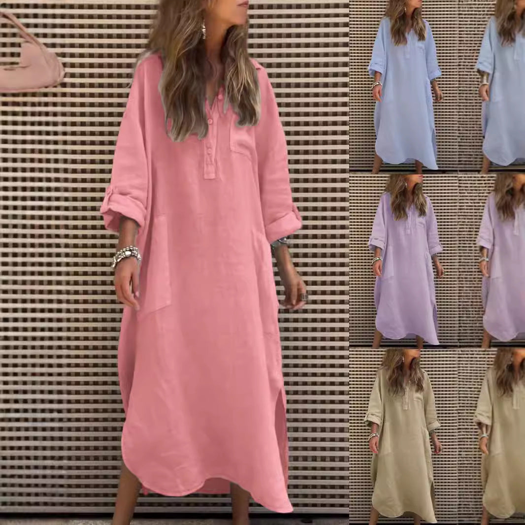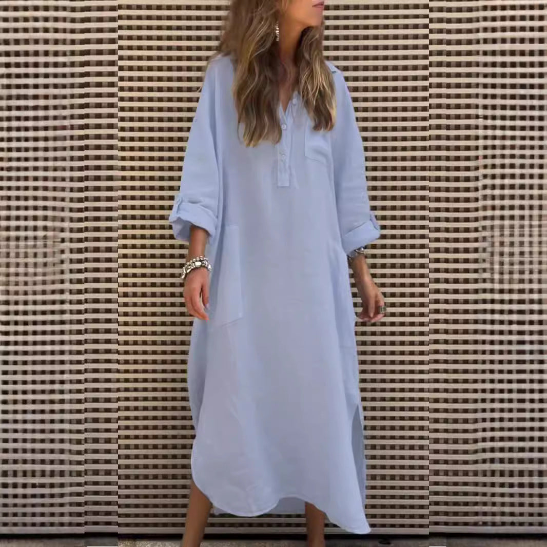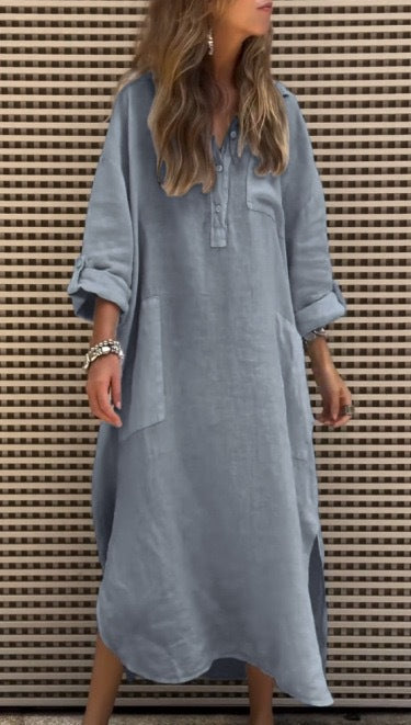 Denne maxikjole kan vidunderligt kombineres med sandaler eller sneakers og er perfekt til en afslappet brunch eller en gåtur i parken. Forvandl dit outfit med et bælte og hæle for et elegant aftenlook!