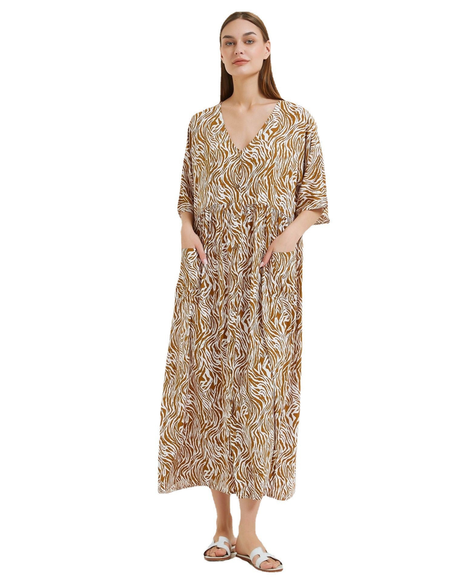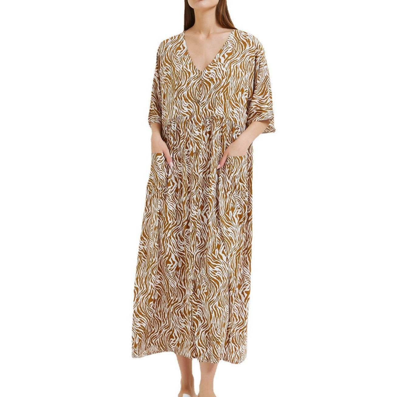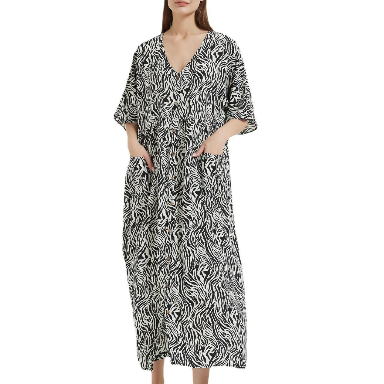 Takket være det moderne mønster tiltrækker maxikjolen alle blikke og sikrer samtidig en behagelig bæreoplevelse. Forkæl dig selv med dette must-have til din sommergarderobe!