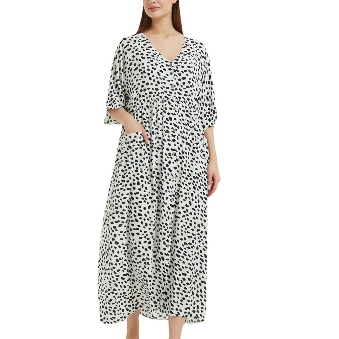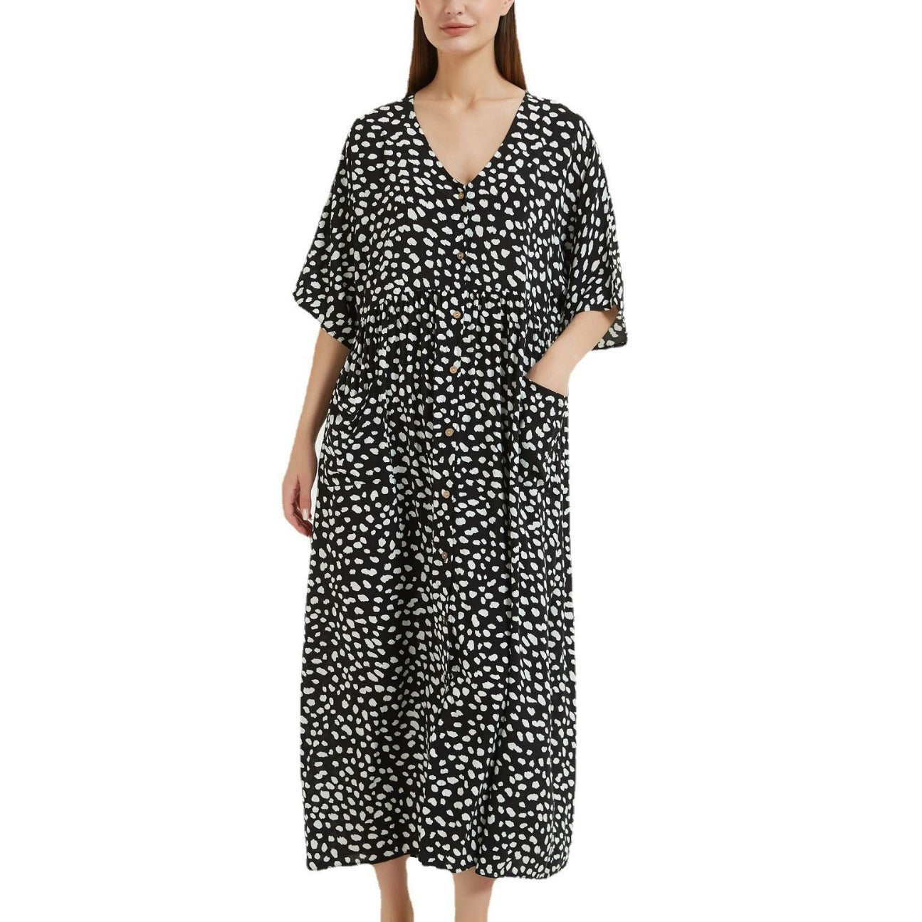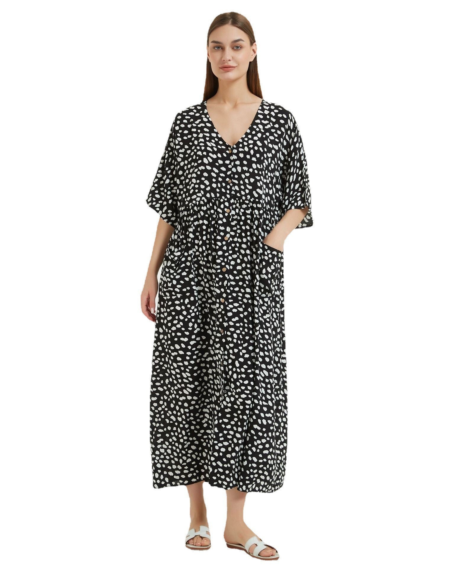 Takket være det moderne mønster tiltrækker maxikjolen alle blikke og sikrer samtidig en behagelig bæreoplevelse. Forkæl dig selv med dette must-have til din sommergarderobe!