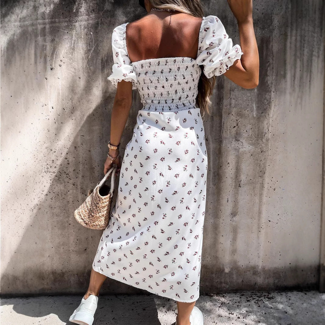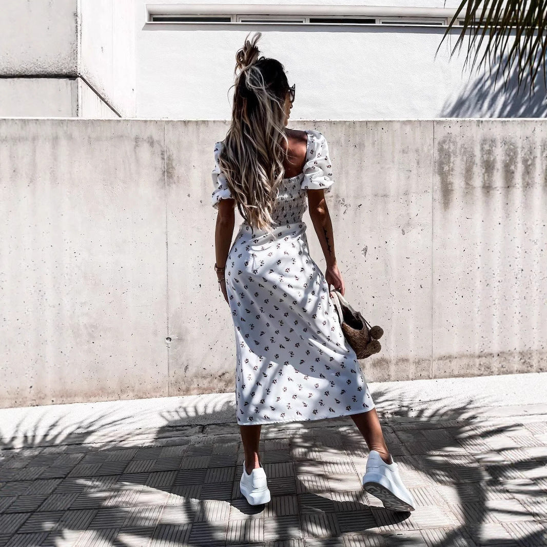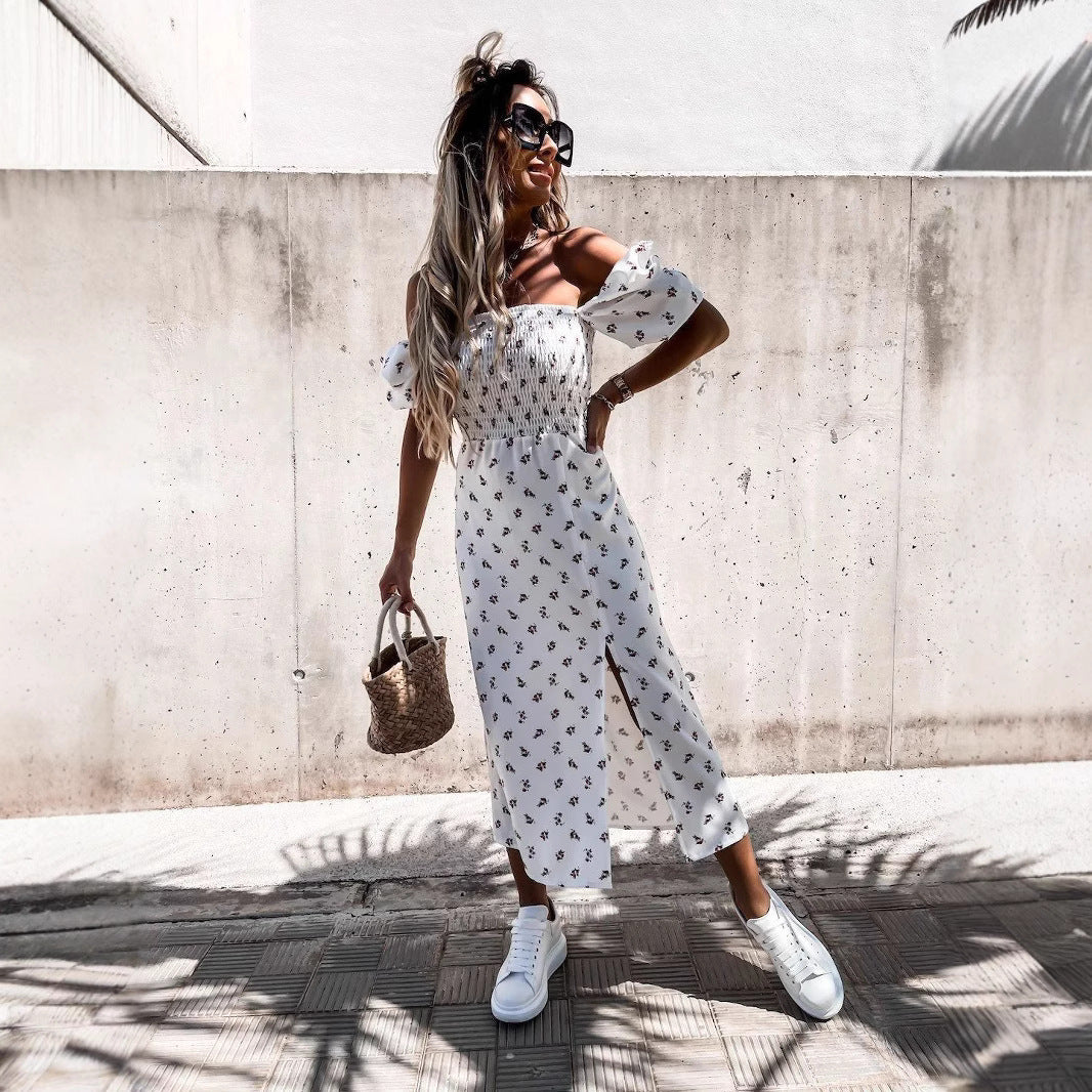 Oplev den perfekte sommerkjole med vores afslappede maxikjole, der beriger enhver garderobe. Denne kjole forener stil og komfort med en elastisk overdel, der tilpasser sig kroppen perfekt og samtidig giver bevægelsesfrihed.