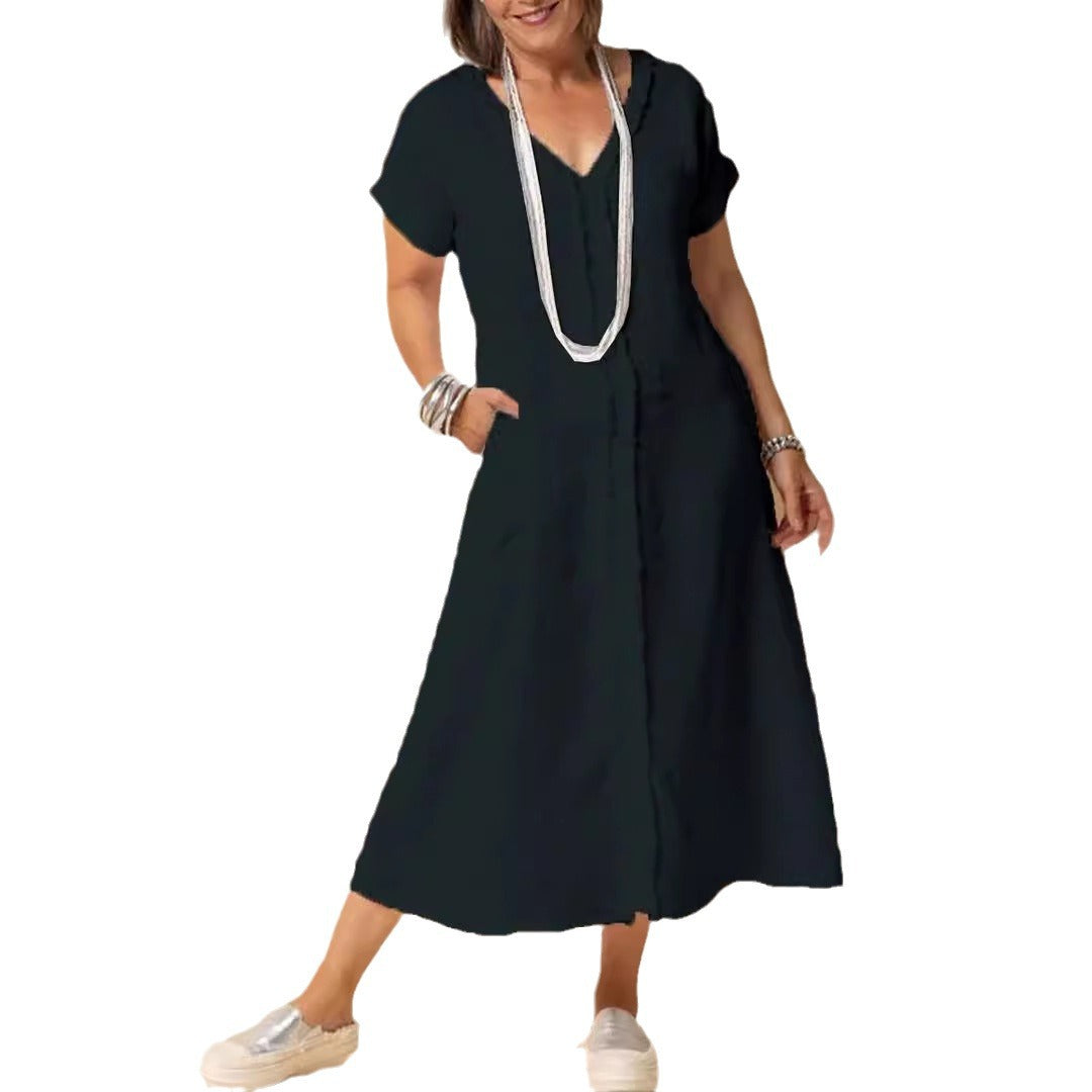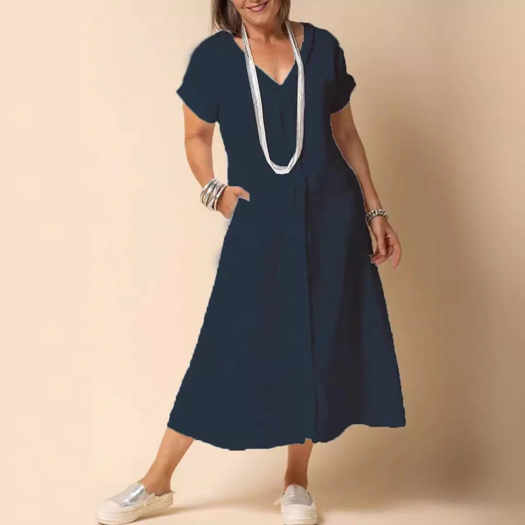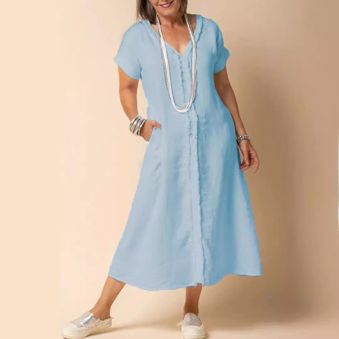 Opdag det stilfulde dameløse maxikjole med lommer fra Stilla, der perfekt kombinerer komfort og elegance. Denne alsidige kjole er ideel til forskellige anledninger, fra en afslappet dag udendørs til en aften med venner.