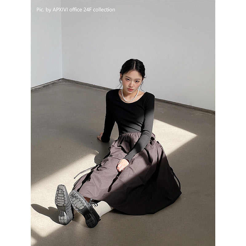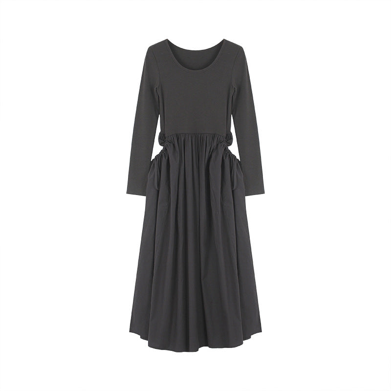 Oplev stil og komfort med vores kvindelige afslappede maxikjole, der er ideel til enhver lejlighed. Denne kjole kendetegnes ved en dyb rund halsudskæring og lange ærmer, der forener elegance og kropsbevidsthed.