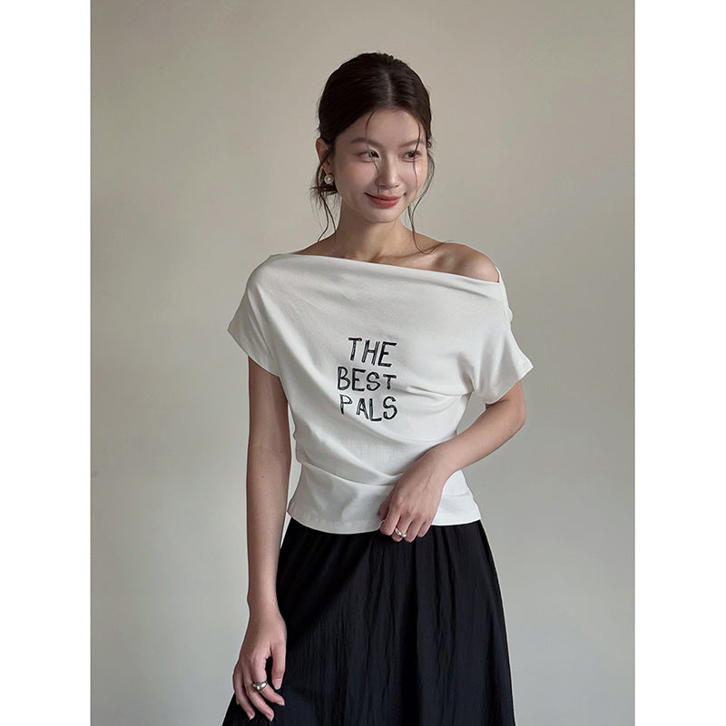 Perfekt for alle, der værdsætter en afslappet stil uden at gå på kompromis med elegancen. Giv dit look en frisk note med denne unikke Off-Shoulder T-shirt fra Stilla!
