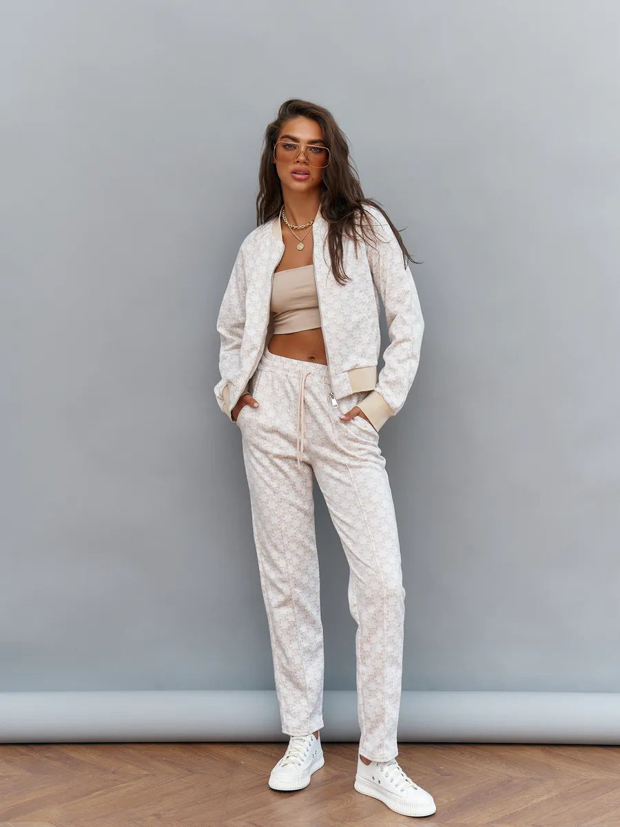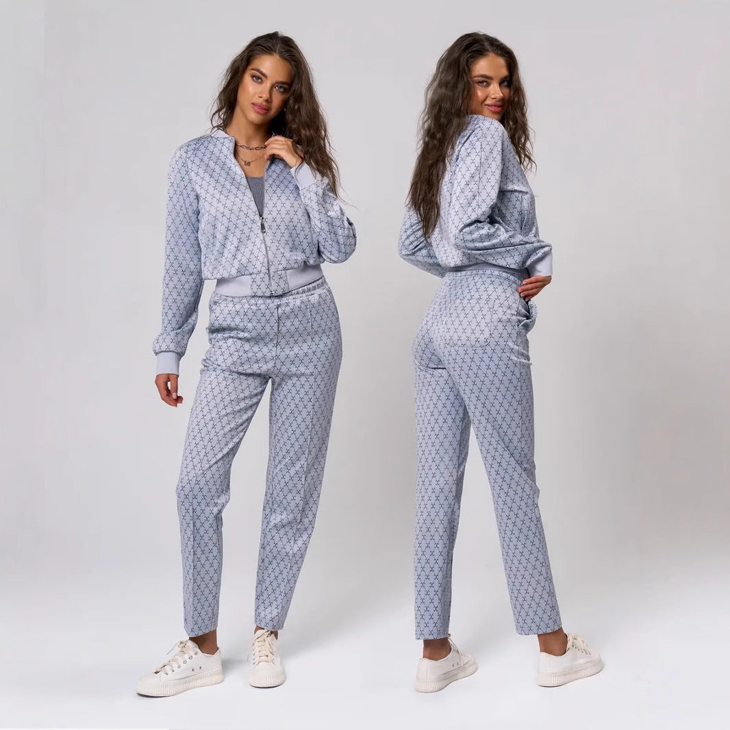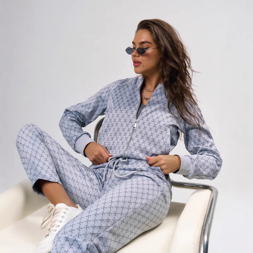 Dette afslappede og fashionable sportsæt til kvinder kombinerer stil og komfort på en fantastisk måde. Det er fremstillet af en førsteklasses, åndbar stofblanding, der sikrer en behagelig bæreoplevelse.