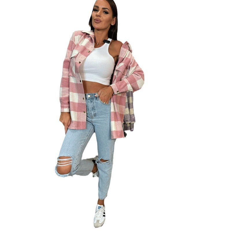 Jakken har et trendy ternet mønster i bløde farver, der opgraderer dit outfit. Med en afslappet pasform og praktiske trykknapper er den nem og behagelig at have på.