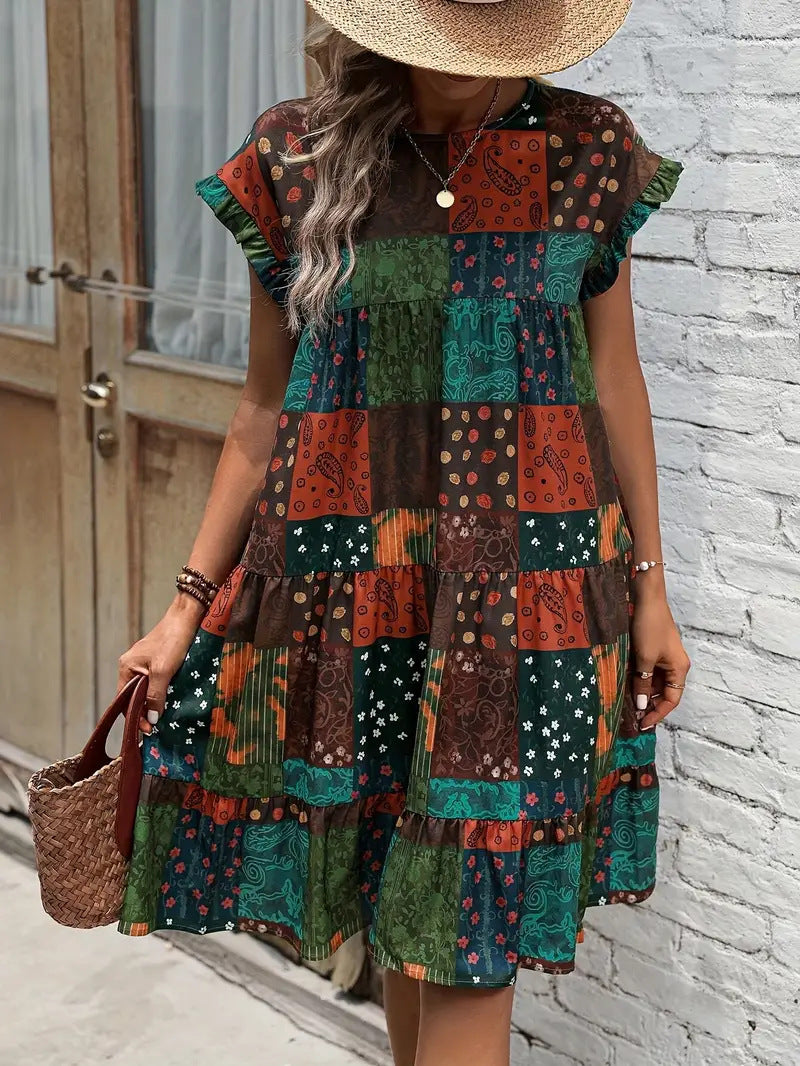 Opdag vores dames afslappede patchworkkjole, der med sit unikke mønster og den komfortable pasform imponerer. Denne kjole er ideel til hverdagsbrug, men tilbyder også den nødvendige elegance til særlige lejligheder.