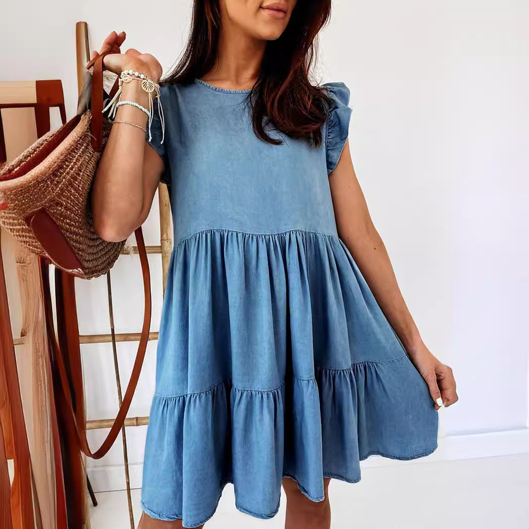 Opdag vores damer afslappede flæsekjole med voluminøs nederdel og åndbart stof fra Stilla, den perfekte kjole til varme dage. Denne kjole kombinerer stil med komfort og sætter feminine accenter.