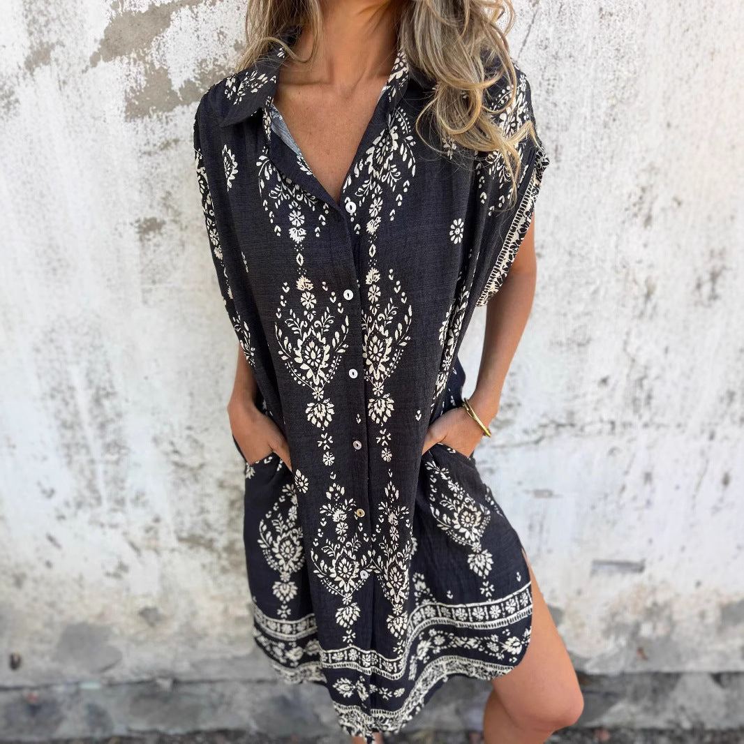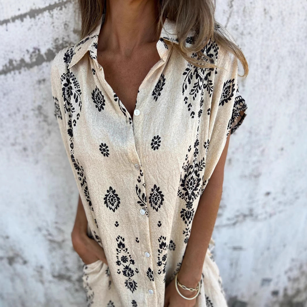 Oplev den elegante dameskjorteblusekjole fra Stilla, der er perfekt til de varme dage. Denne kjole kombinerer stil og komfort og er ideel til forskellige anledninger, hvad enten det er en gåtur i parken eller et afslappet møde med venner.
