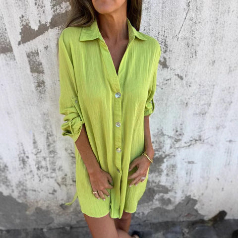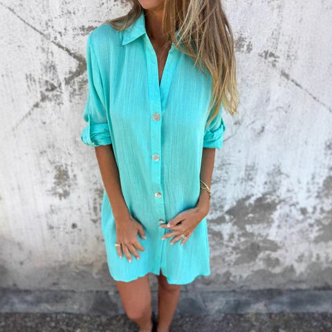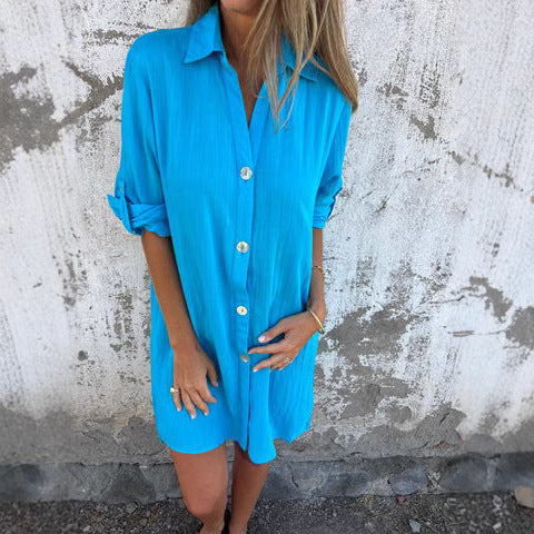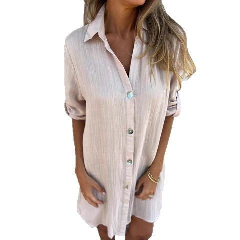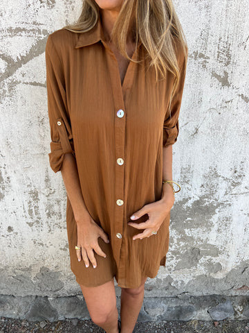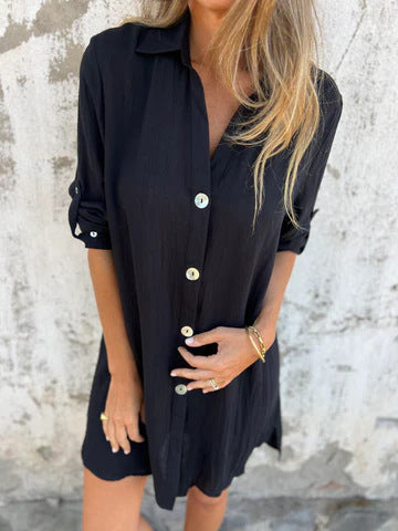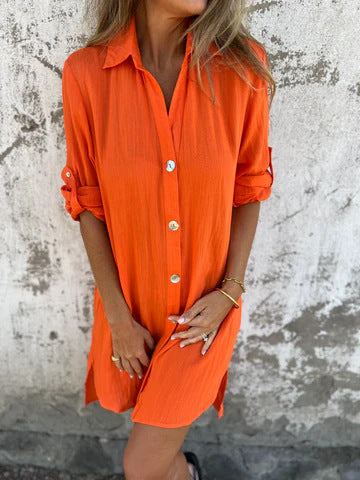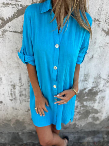 Opdag vores fashionable, afslappede skjortekjole, perfekt til enhver lejlighed. Denne kjole lavet af højkvalitets viskoseblanding giver dig maksimal komfort og åndbarhed, ideel til varme dage.