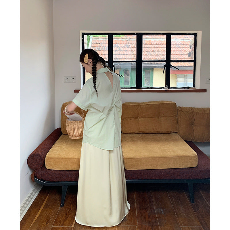 Opdag vores unikke afslappede skjortekjole med fashionable rygudskæring og løs silhuet fra Stilla. Denne kjole kombinerer stilfuld elegance med behagelig komfort.