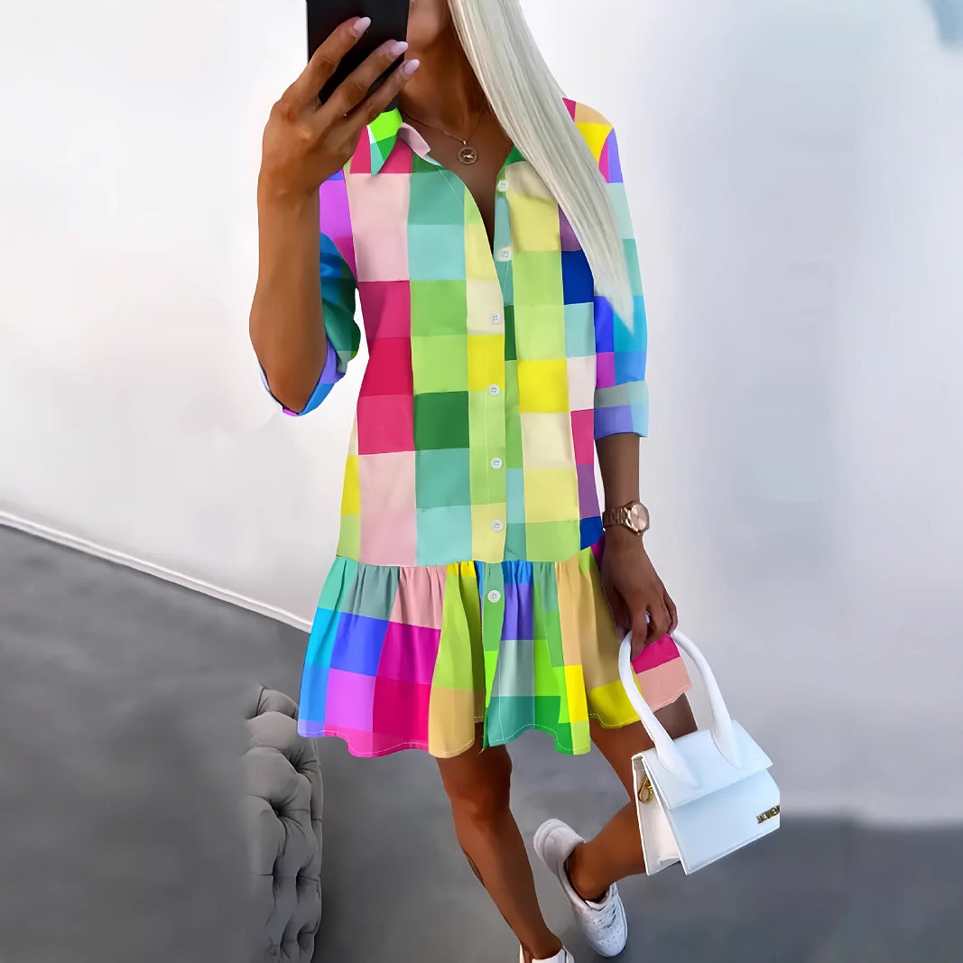 Opdag vores damers casual skjorte kjole med stribet ternet mønster Stilla – det perfekte valg for stilbevidste kvinder, der værdsætter både komfort og trends.