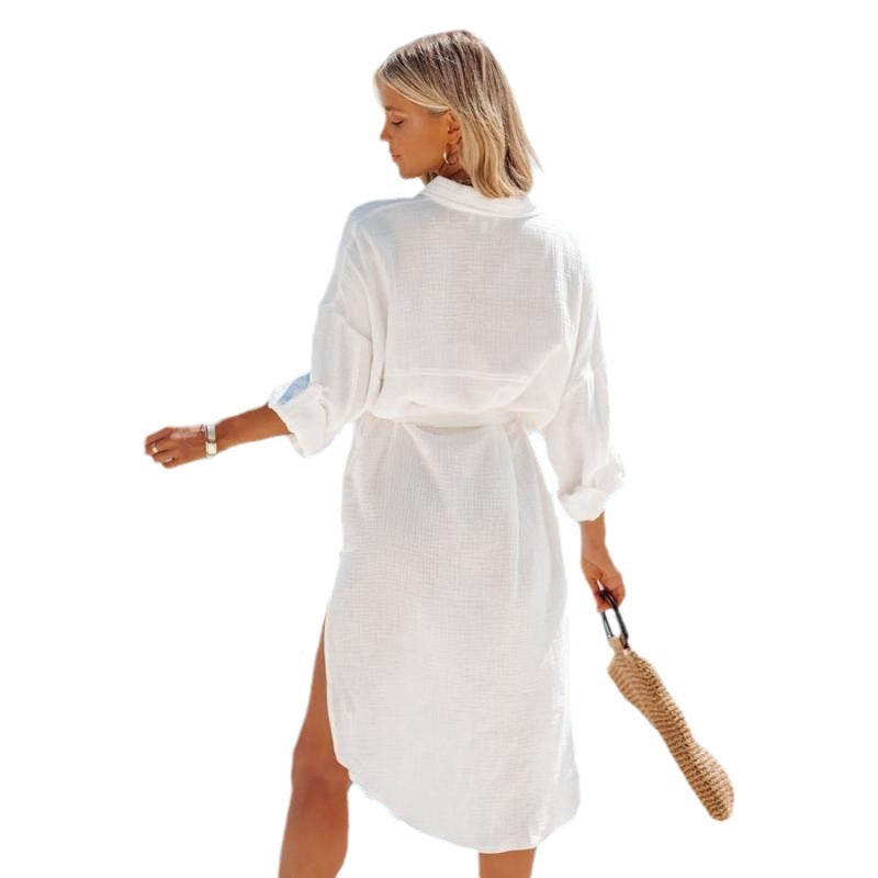 Perfekt til stranddage, byvandringer eller afslappede aftener – denne skjortekjole er et must-have i din sommergarderobe!