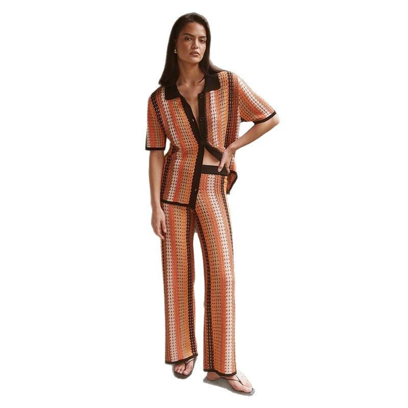Opdag den trendy dame casual skjorte og palazzo bukser sæt fra Stilla, der forener komfort og stil. Dette sæt er lavet af højkvalitets, åndbart materiale, der sikrer optimal bevægelse. Det kreative mønster er let genkendeligt og tilføjer et moderne præg til dit look.