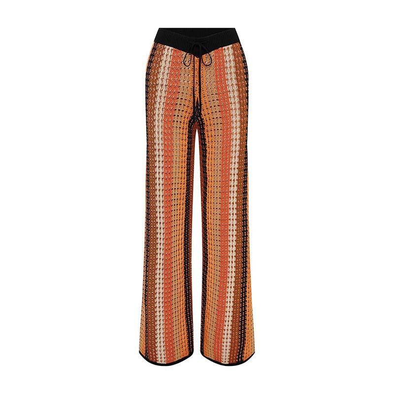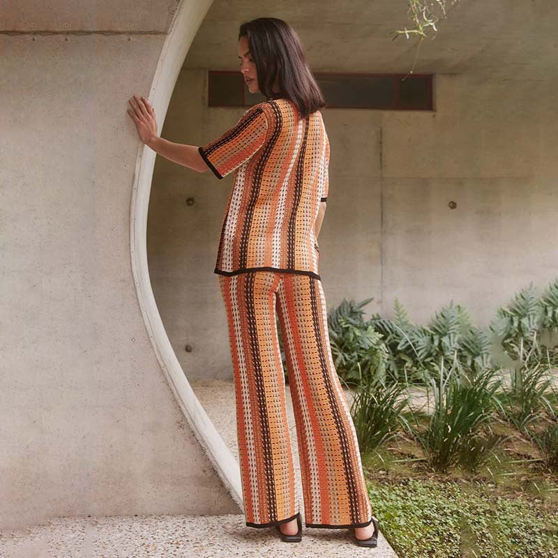 Overdelene har en løs pasform med en klassisk krave og en gennemgående knaplukning, der er både elegant og afslappet. Palazzo bukserne har en bred pasform, der skaber en harmonisk silhuet og samtidig tilbyder ultimativ komfort.