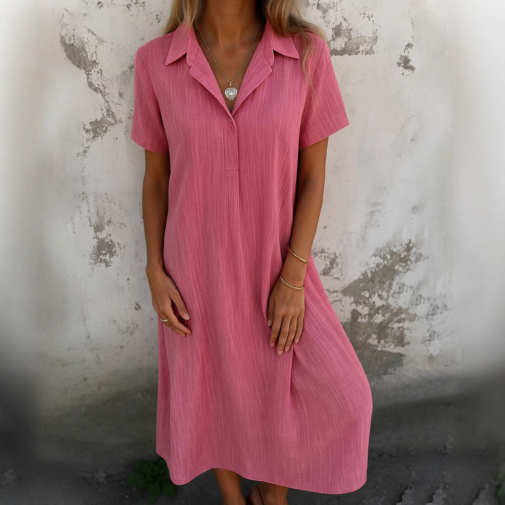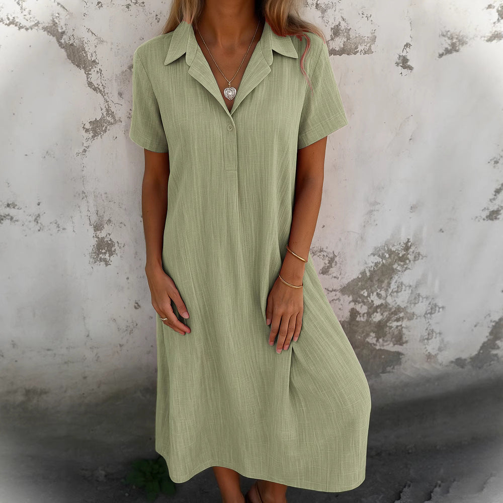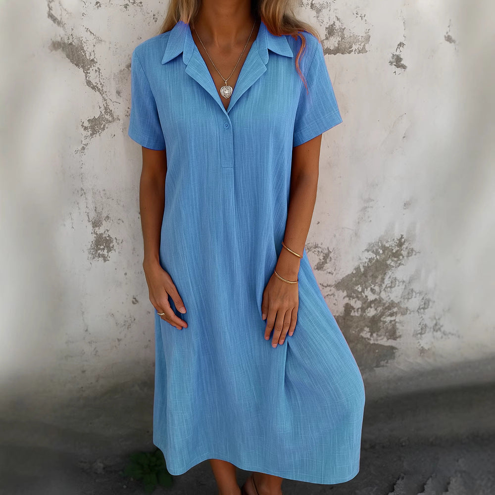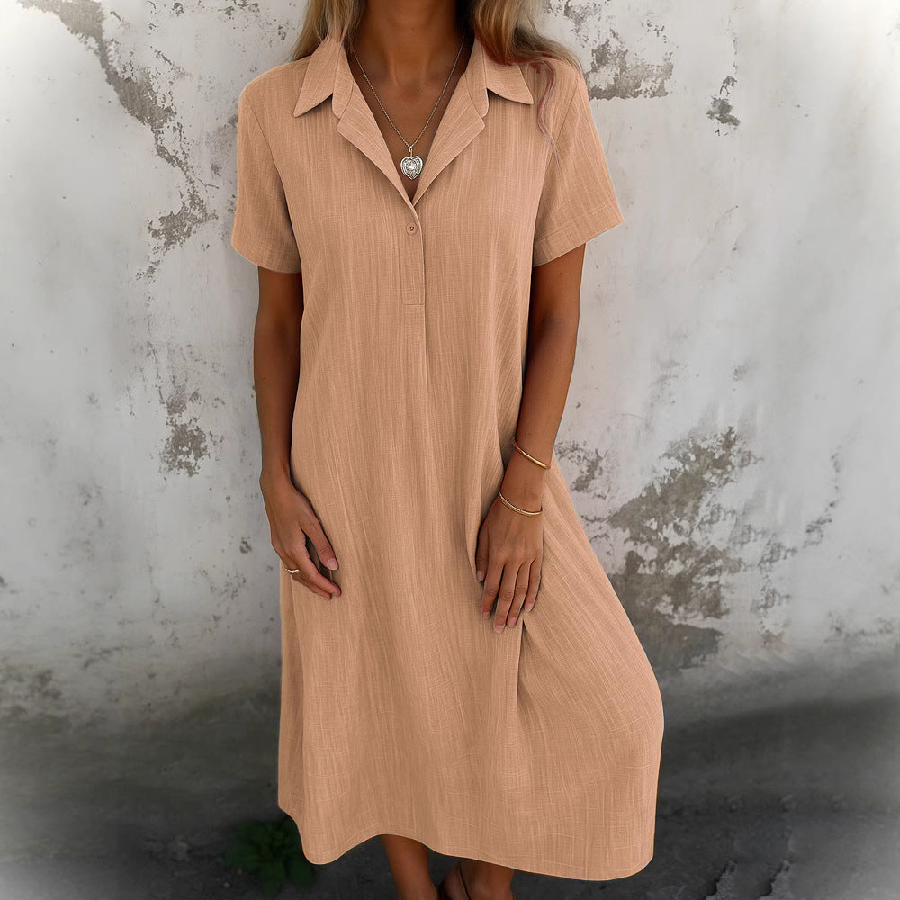 Oplev vores dames afslappede skjortekjole fremstillet af åndbart materiale, perfekt til varme dage og afslappede udflugter. Denne kjole kombinerer stil og komfort og er ideel til hverdagen eller særlige lejligheder.