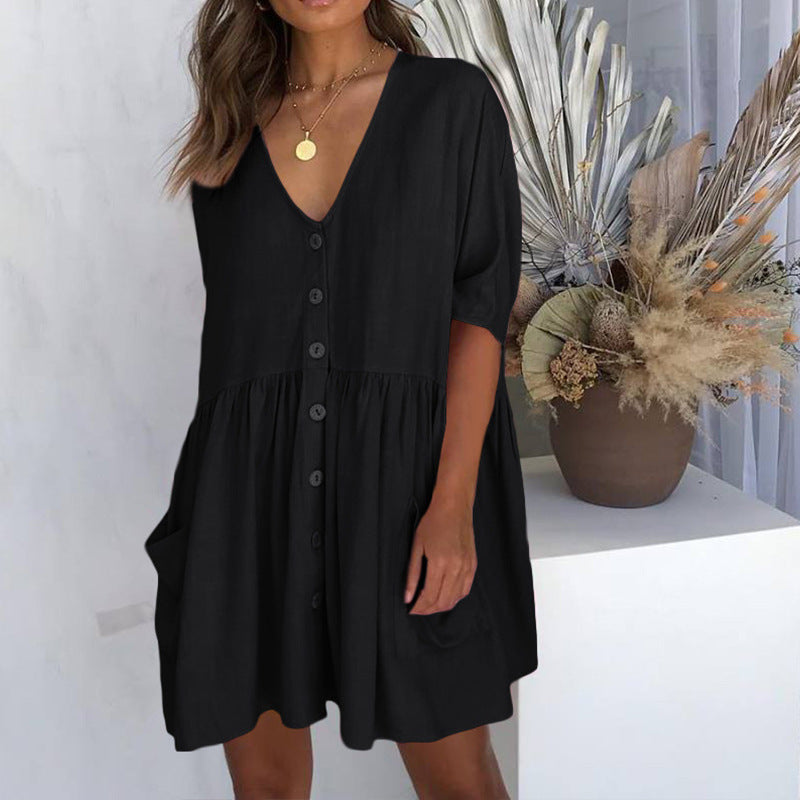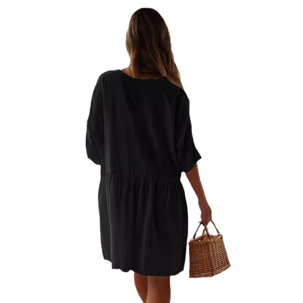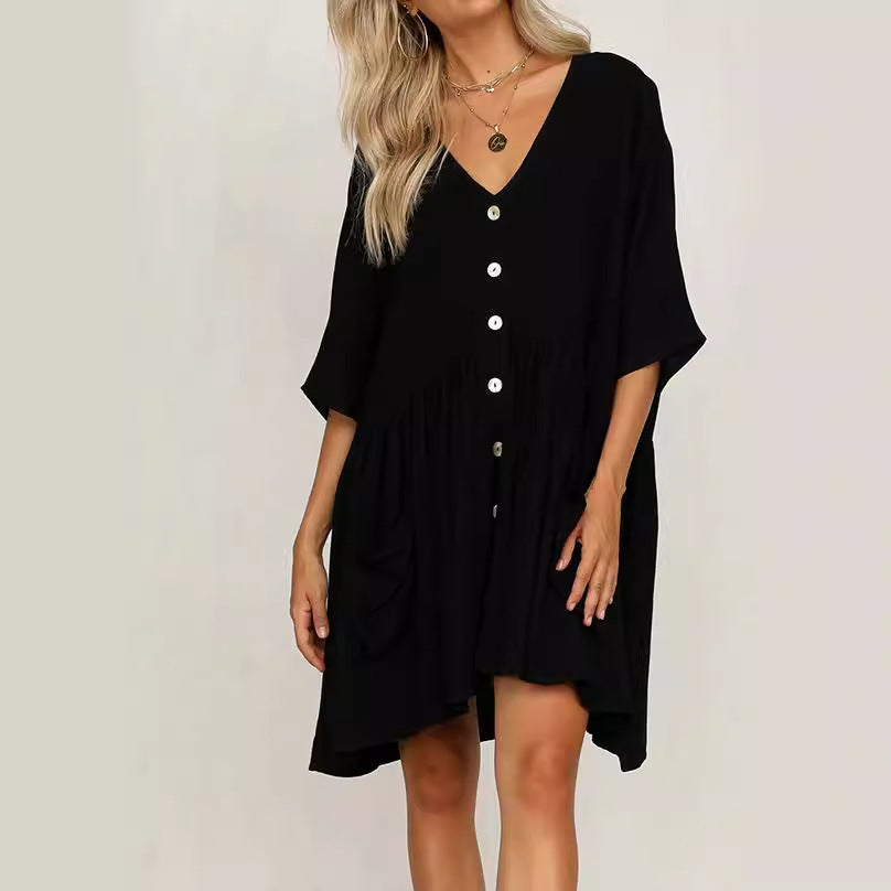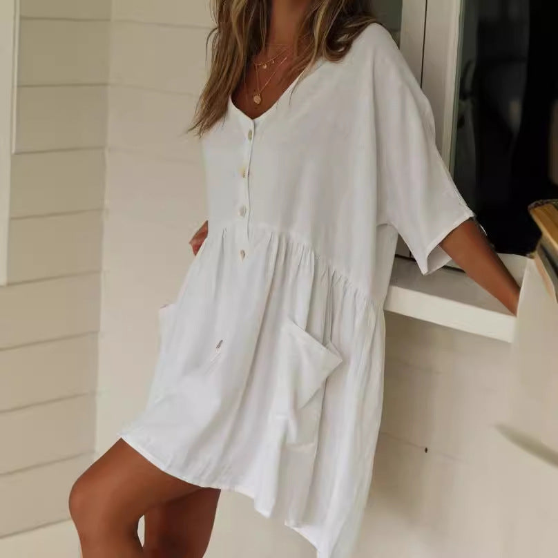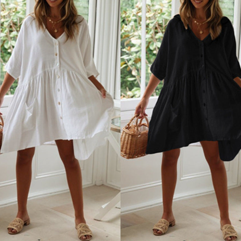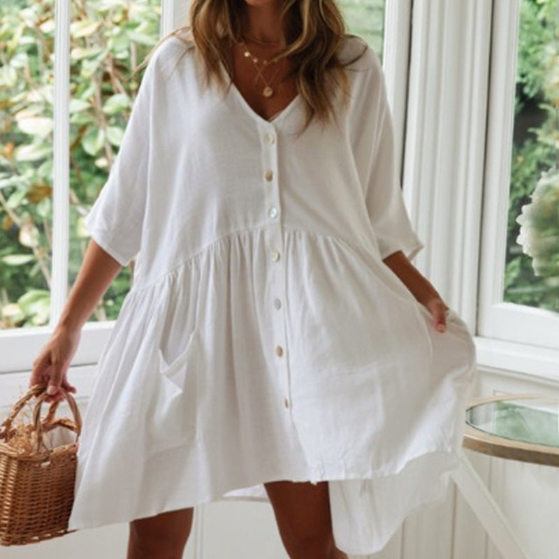 Denne skjorte-kjole kombinerer stil og funktionalitet og gør den til et must-have i enhver sommergarderobe. Giv dit look et friskt pust og nyd komforten hele dagen!