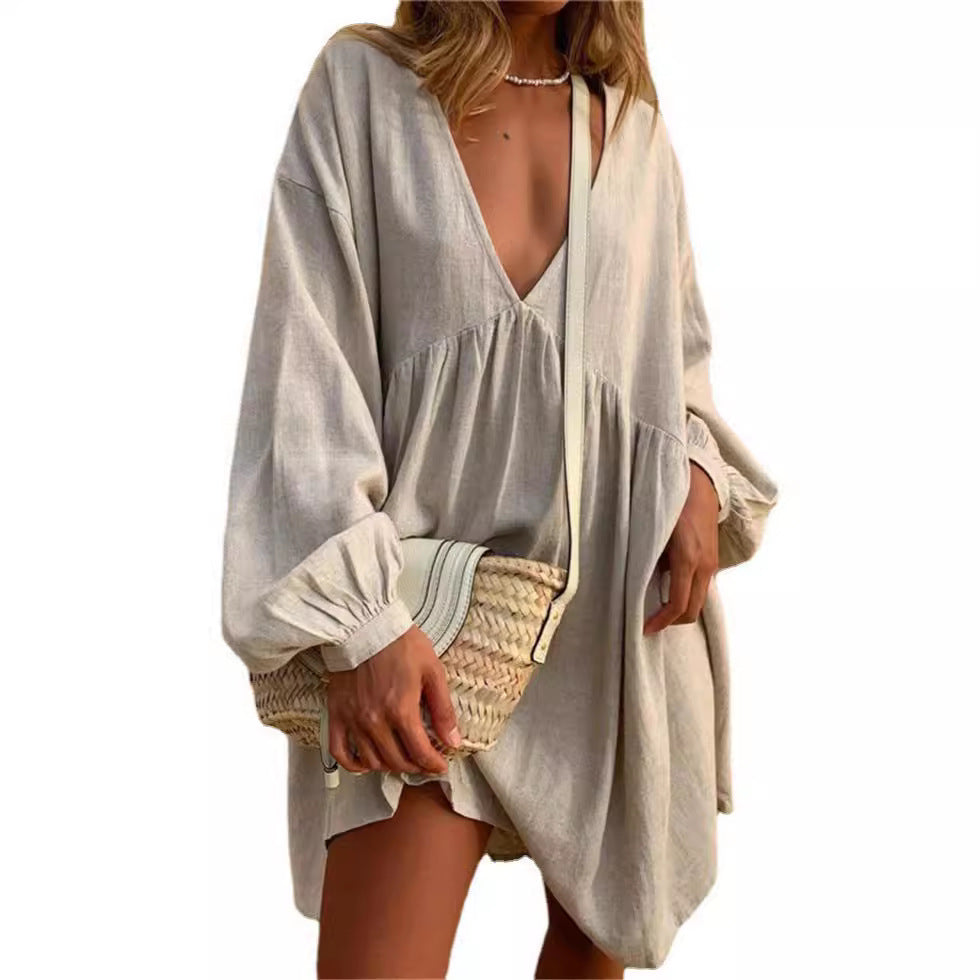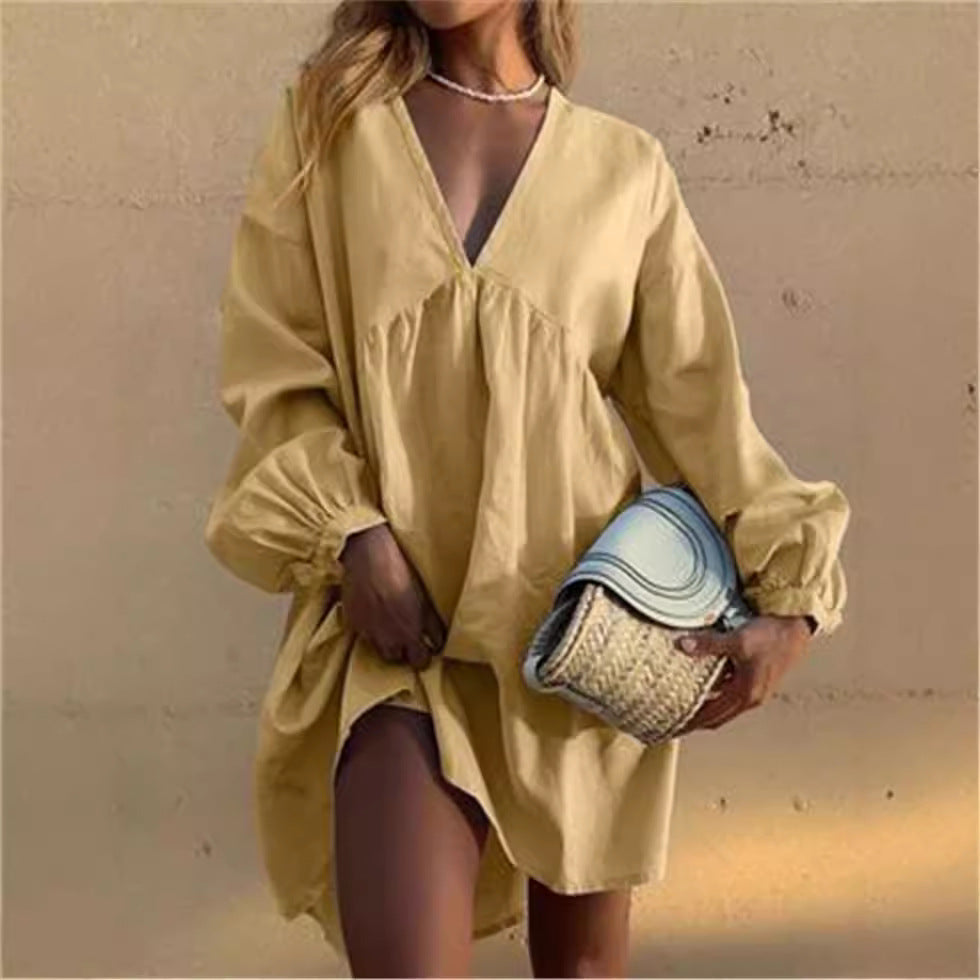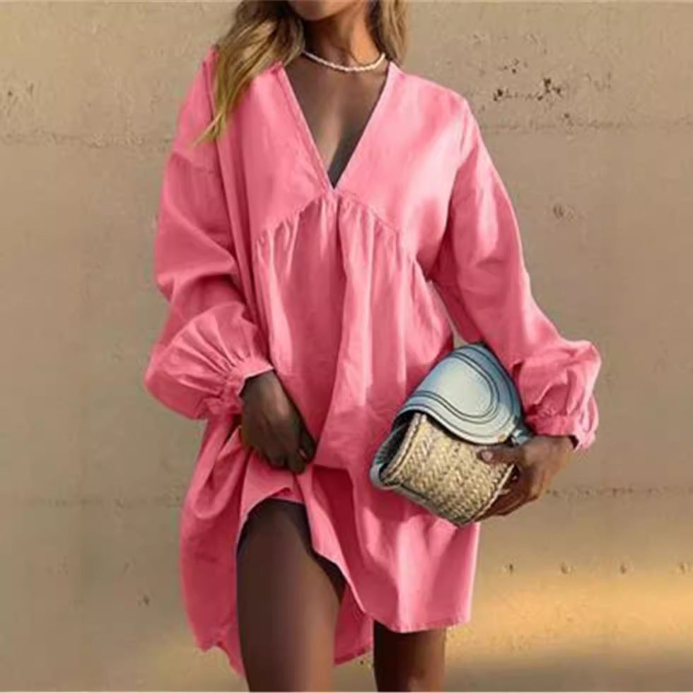 Denne elegante og samtidig afslappede skjortekjole er det perfekte outfit til enhver lejlighed. Det lette og åndbare materiale sikrer høj bærekomfort, mens det fuldfladede design med en v-udskæring giver et moderne præg.