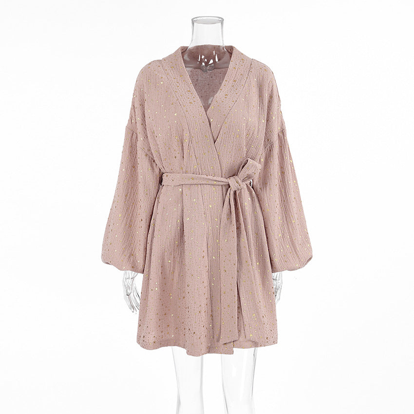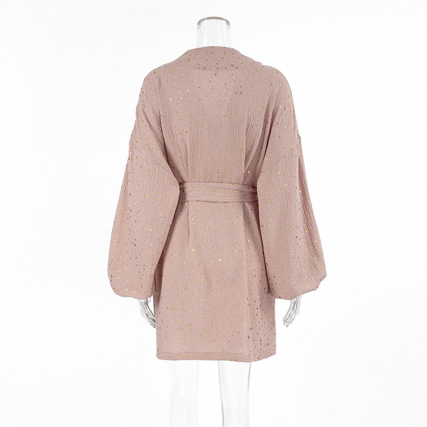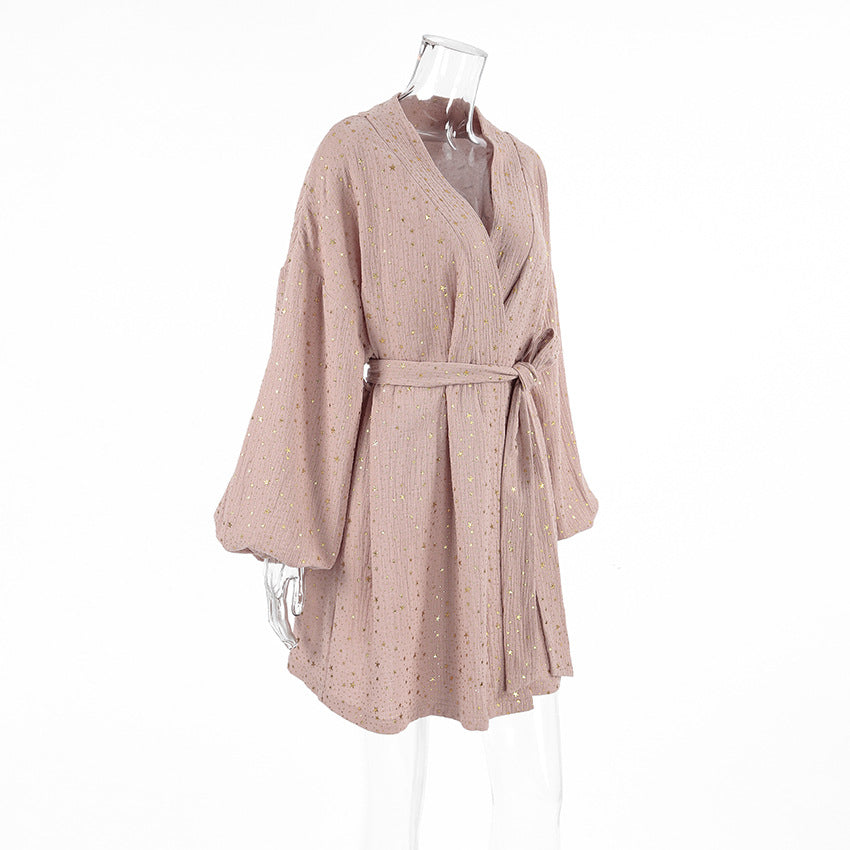 Opdag den perfekte kombination af stil og komfort med vores afslappede sommerbluse, der er designet specielt til modebevidste kvinder. Denne bluse imponerer med voluminøse ærmer og et taljerbart bælte, der flatterer din silhuet.