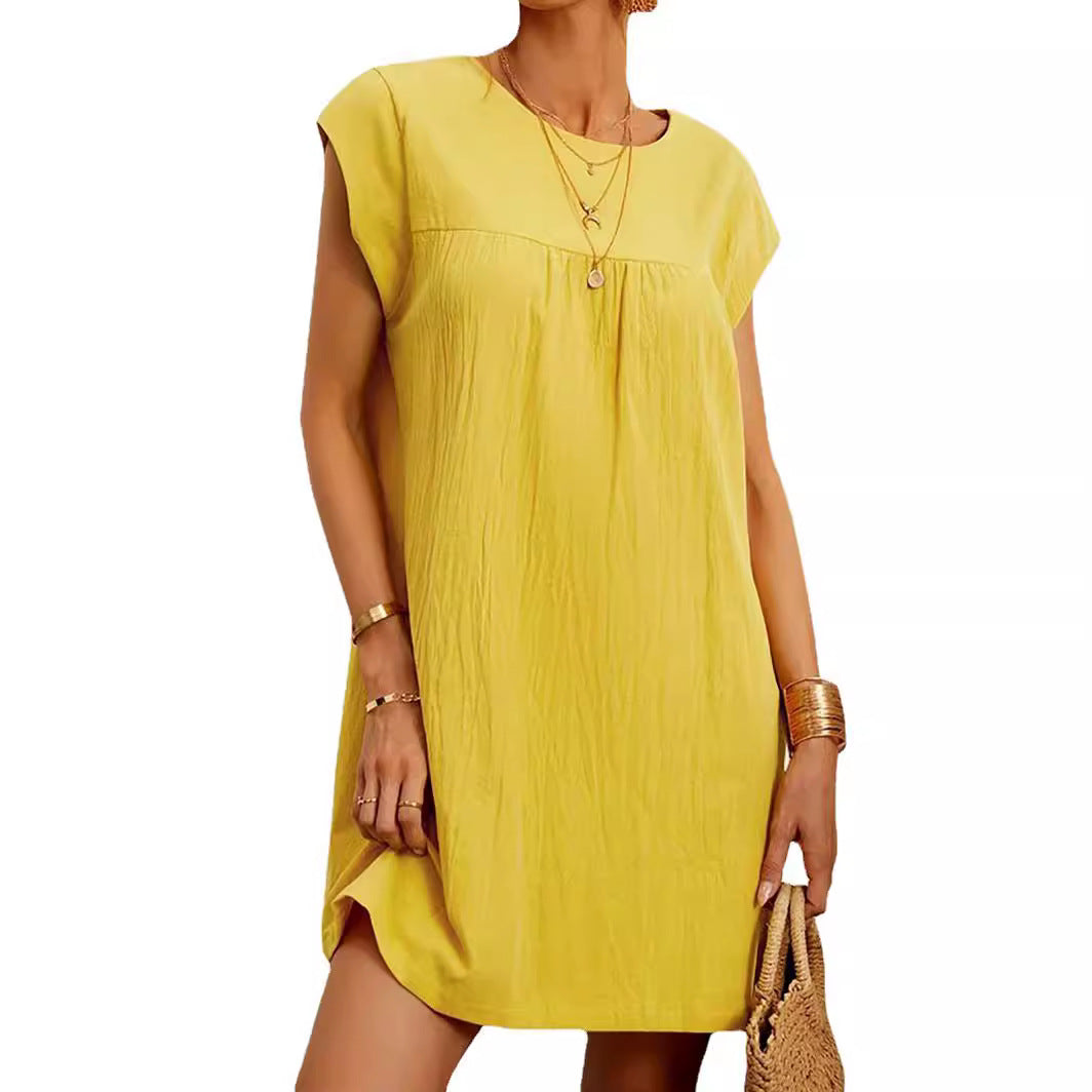Opdag vores damesommerkjole med løs pasform og korte ærmer fra Stilla. Denne sommerkjole er det perfekte valg til varme dage og giver en følelse af lethed og elegance. Fremstillet af høj kvalitet, åndbart materiale, tilbyder den ikke kun en høj bærekomfort, men kan også styles på mange forskellige måder.