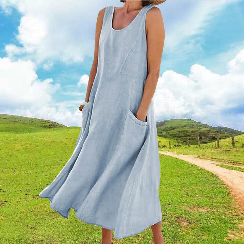 Denne sommerkjole er et must-have for enhver sæson og kan kombineres vidunderligt med forskellige accessories. Nyd letheden af sommervarmen i vores elegante og funktionelle kjole!