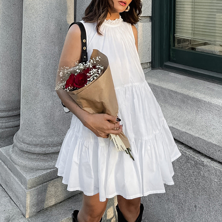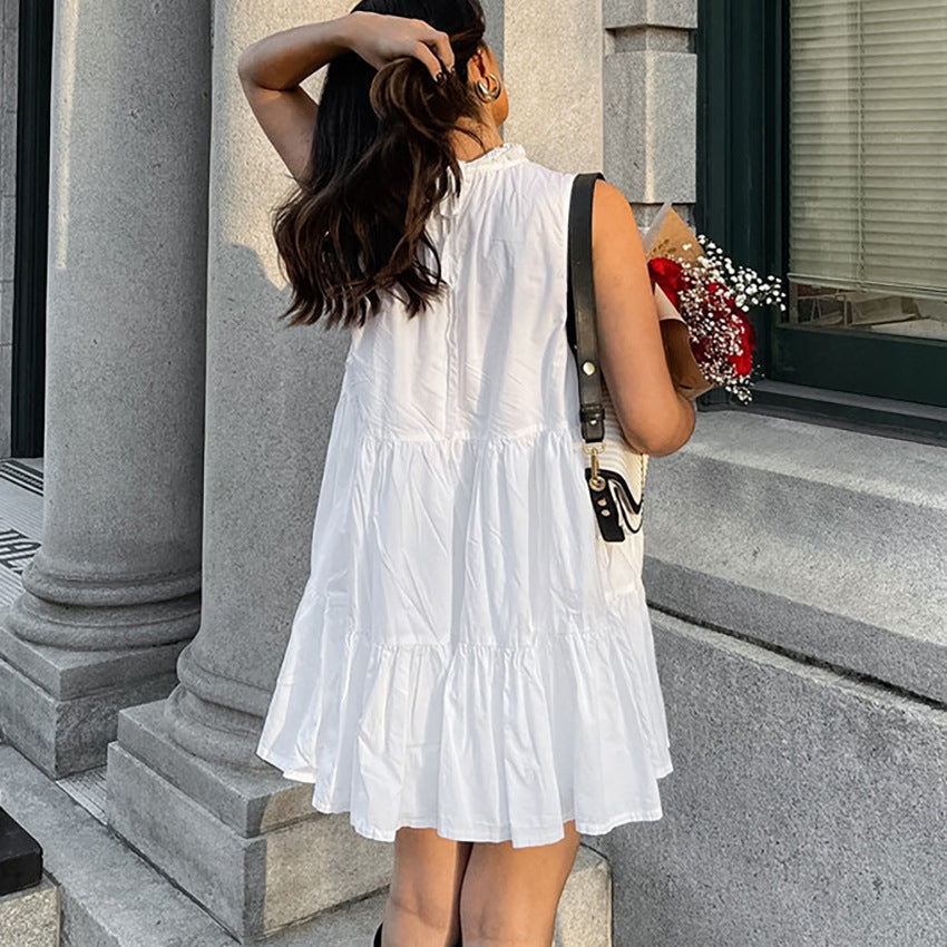 Denne charmerende damesommerkjole er ideel til varme dage og særlige anledninger. Kjolen fremhæver sin flydende skæring og de legende flæsedetaljer, der giver den et feminint præg. Den elegante udskæring giver straks et friskt, stilfuldt look.