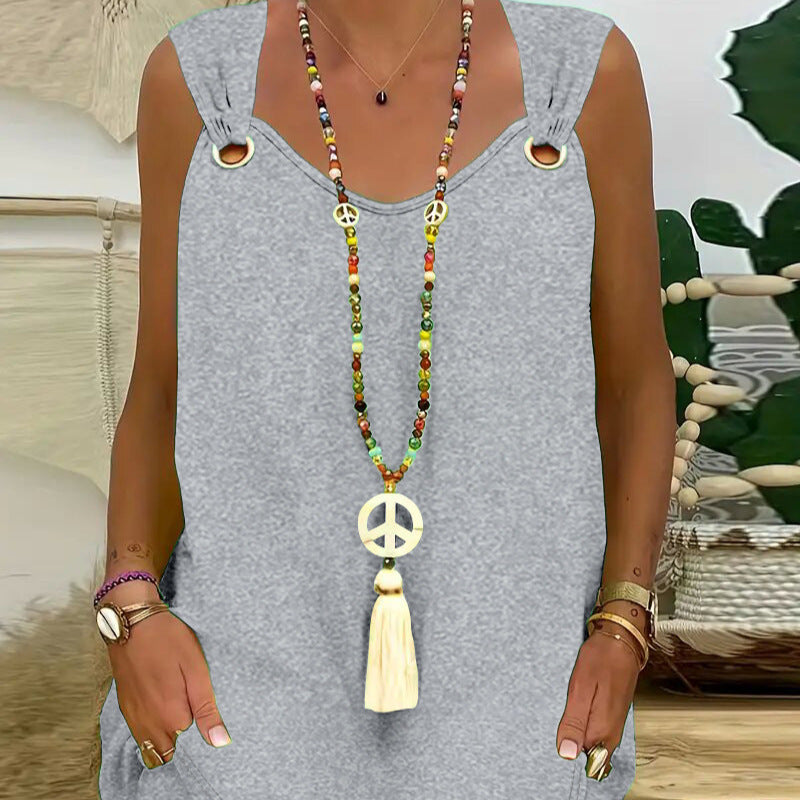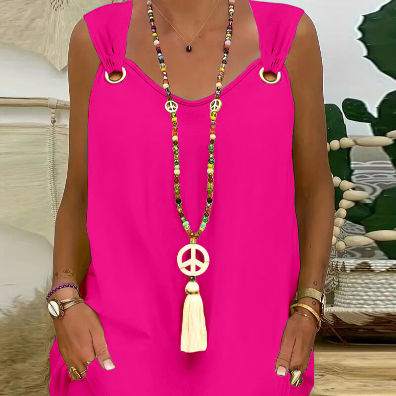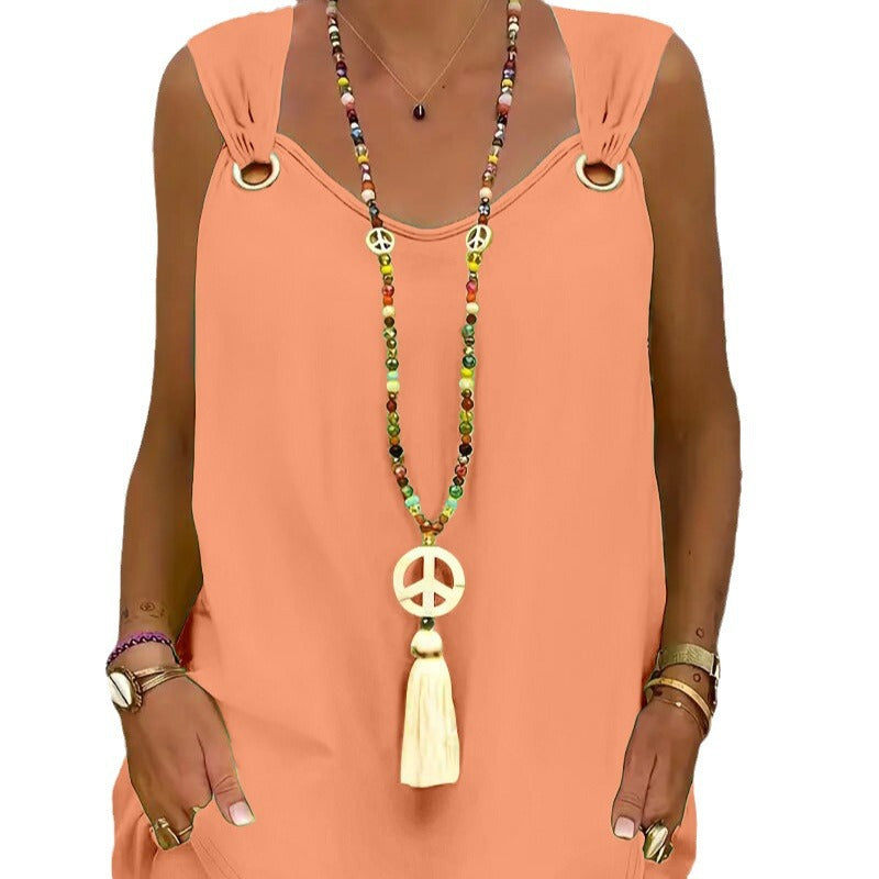 Giv dit sommeroutfit et friskt præg med denne trendy spaghetti-stropkjole og nyd den frihed, den bringer!
