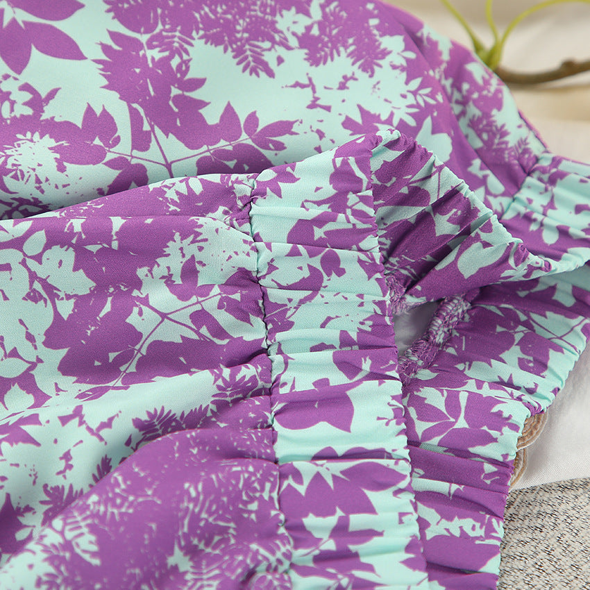 - Blomstermønster: Det iøjnefaldende blomstermønster giver outfittet et friskt, ungdommeligt præg og gør det til et blikfang.