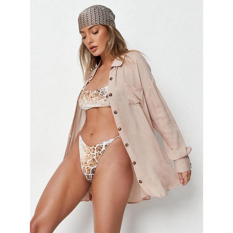 Denne bluse tilbyder ikke kun et stilfuldt look, men også funktionalitet og komfort. Forkæl dig selv med det perfekte følge til dine sommereventyr!