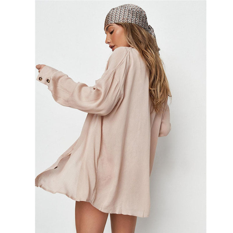 Opdag vores dames afslappede strandbluse med høj kvalitet knapdetaljer Stilla - det ideelle tøj til en afslappende dag ved stranden eller poolen. Denne bluse kombinerer stil og komfort og er perfekt til modebevidste kvinder, der søger et cool look.