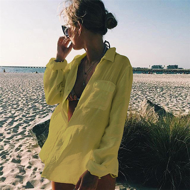 Oplev vores stilfulde damestrandbluse, der er perfekt til afslappende dage på stranden eller som det rigtige outfit til strandpromenaden. Denne bluse kombinerer afslappet elegance med praktiske egenskaber og er lavet af et let, åndbart materiale, der også er behageligt at have på på varme dage.