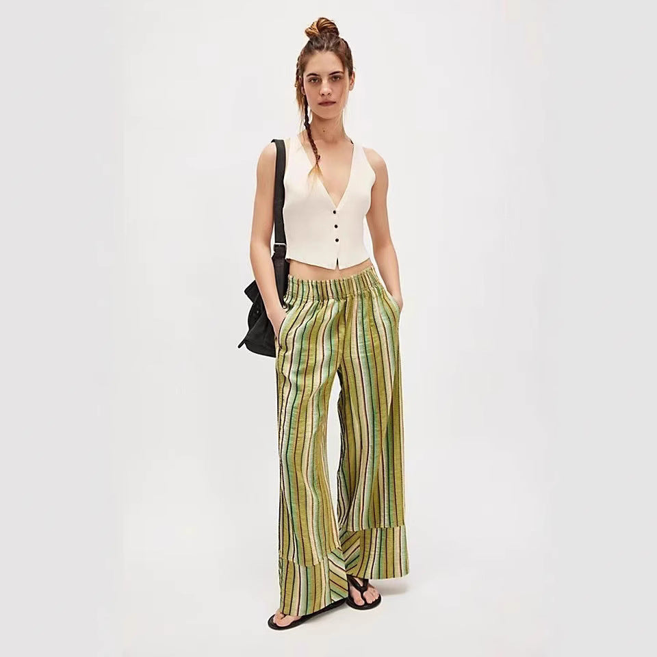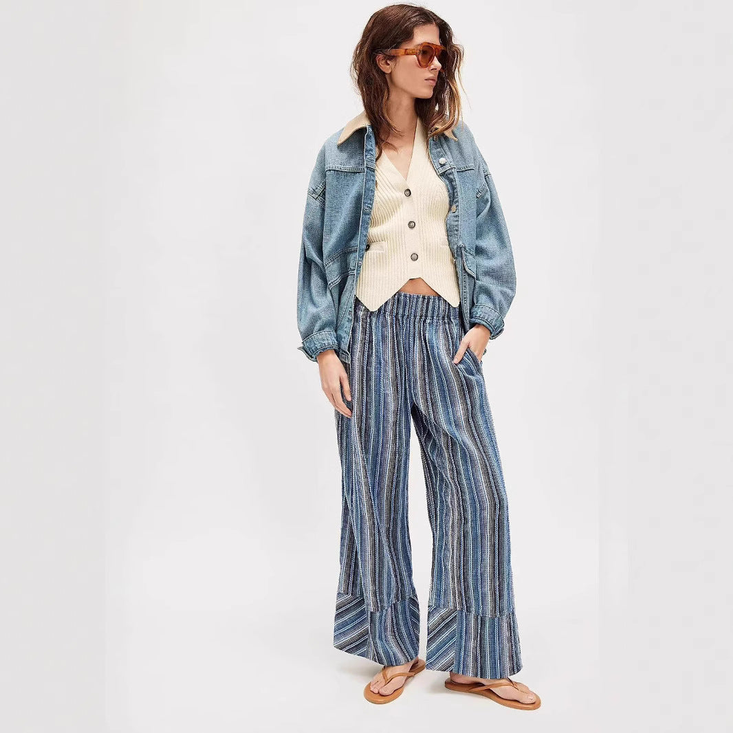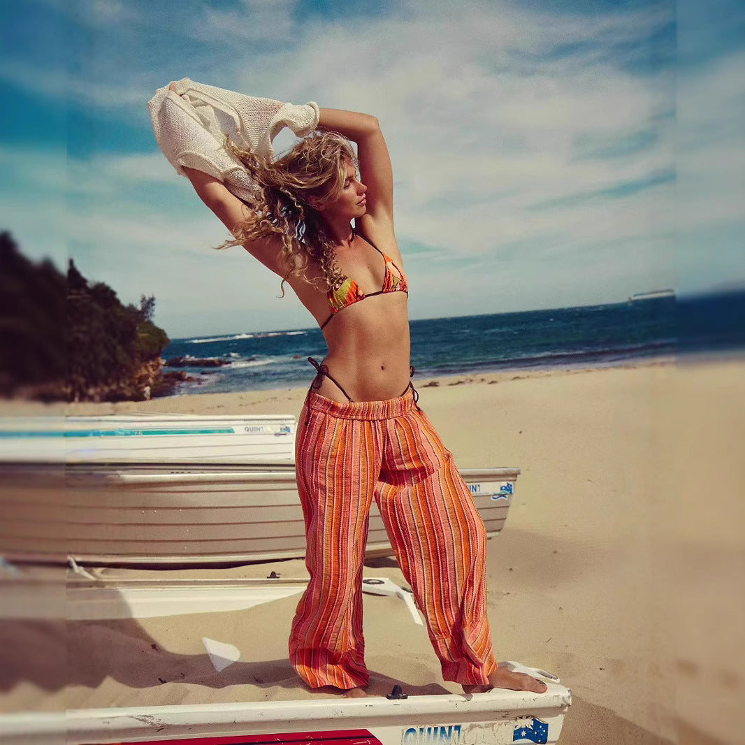 Opdag den perfekte kombination af komfort og stil med vores dames afslappede strandbukser. Disse bukser er ideelle til solrige dage og afslappede udflugter. Med sit stilfulde stripes mønster bringer de et friskt pust til din sommergarderobe.