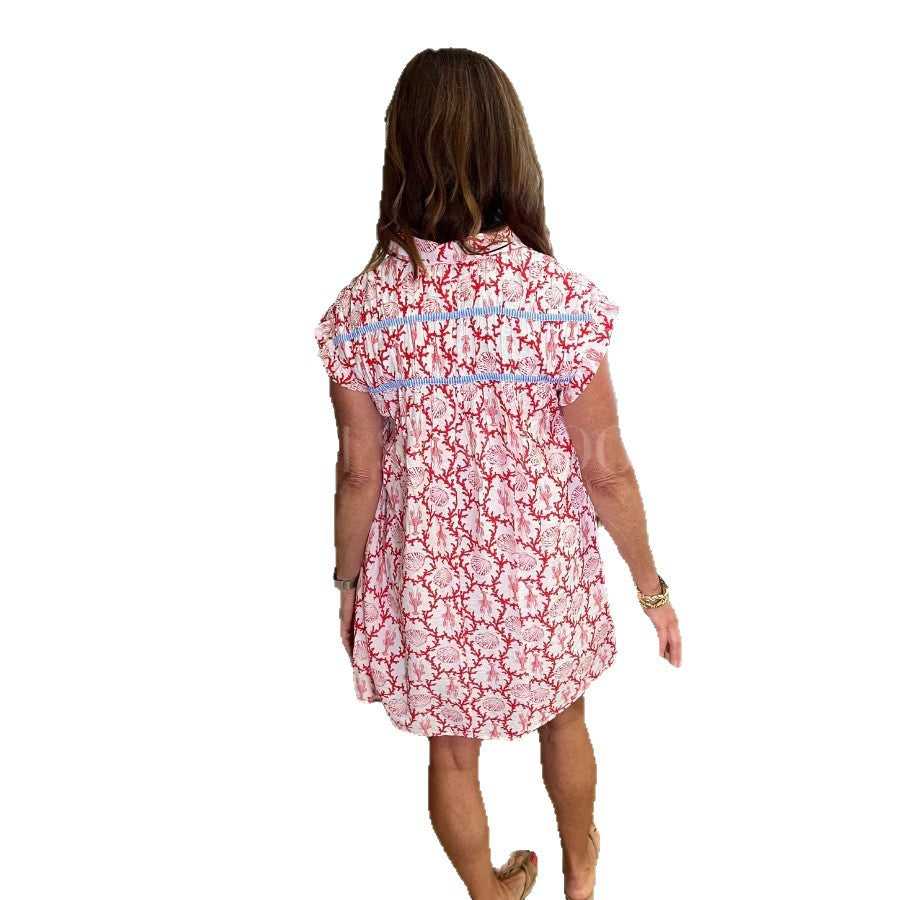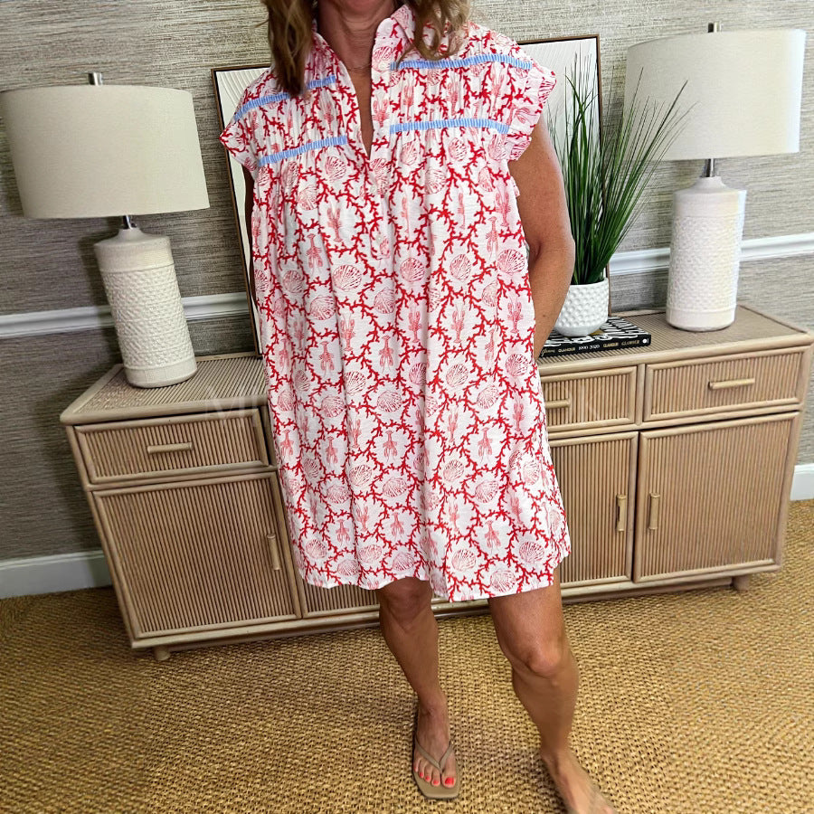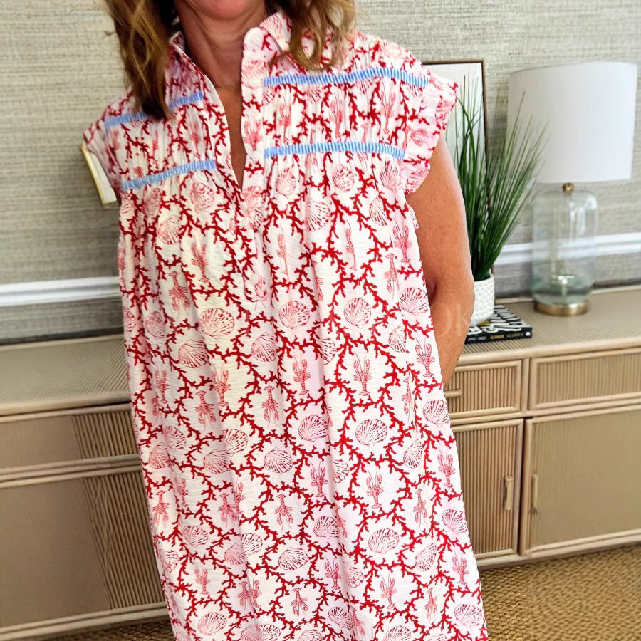 Opdag vores casual strandkjole til damer med blomstermønster og knapfri design - den perfekte følgesvend til varme sommerdage og afslappede strandbesøg.