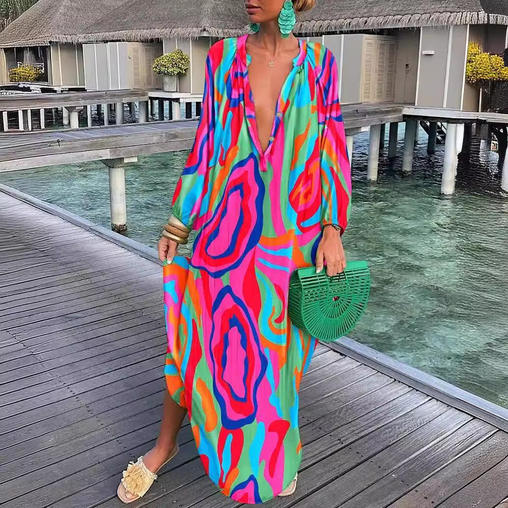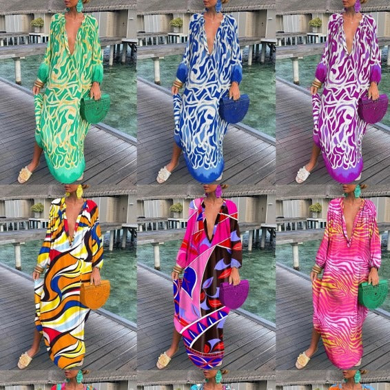 Denne strandkjole er et must-have for enhver modedesignbevidste kvinde. Kombiner den med sandaler og en cool taske for et komplet look, der begejstrer overalt.