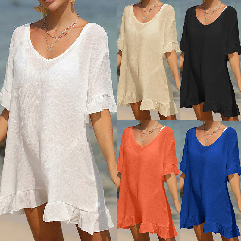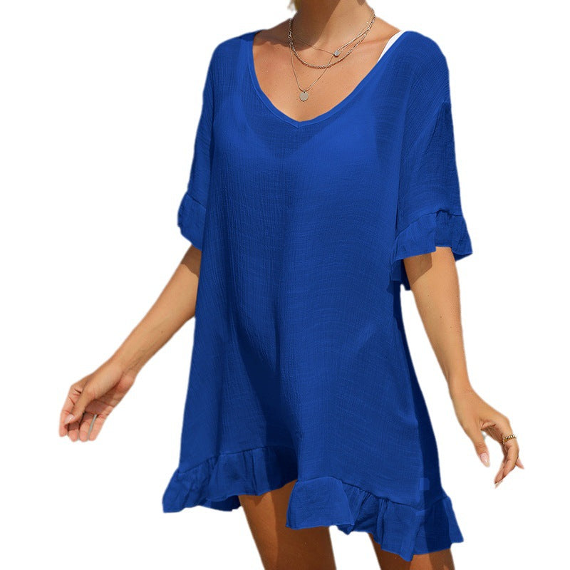 Nyd de varme solskinsdage med vores elegante og afslappede damestrandtunika med flæsekanter fra Stilla. Denne tunika er specielt designet til at forene både komfort og stil, hvilket gør den til den perfekte ledsager til dit næste strandbesøg eller sommerudflugt.