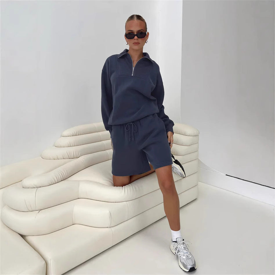 Udforsk det ideelle fritidstøj med vores komfortable sweatshirt- og shorts-set fra Stilla. Dette ensemble er perfekt til afslappende dage eller aktive udendørs aktiviteter. Blusen har en kort lynlås, som tilføjer ekstra komfort og et stilfuldt præg.