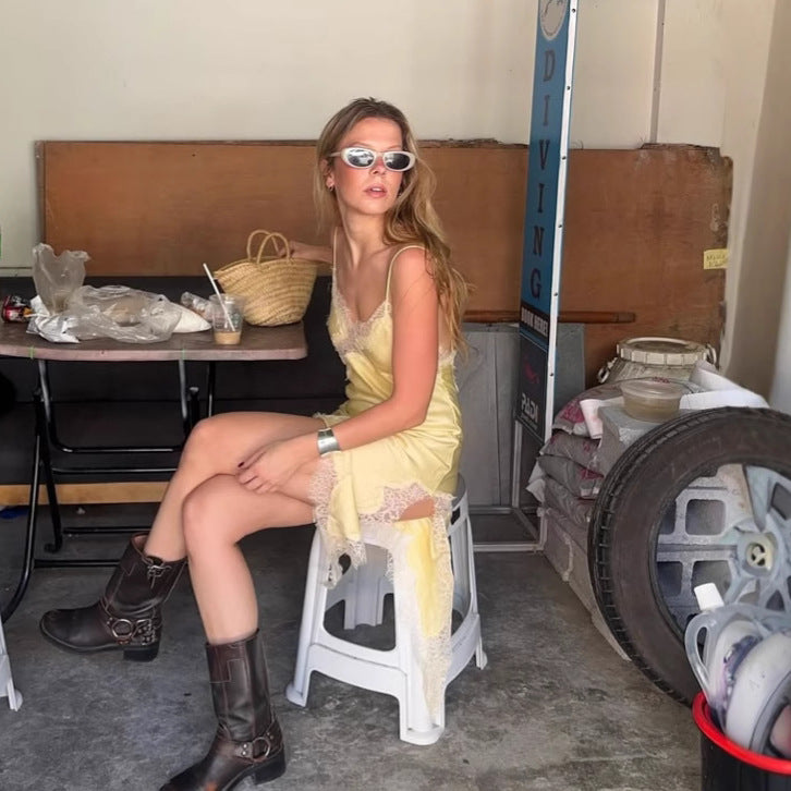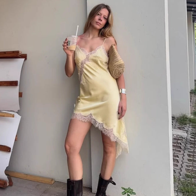 Træd ind i en verden af stil og komfort med vores elegante asymmetrisk natkjole med spids detaljer. Dette udsøgte stykke er designet til kvinder, der værdsætter de fine detaljer i livet, mens de nyder luksuriøs komfort.