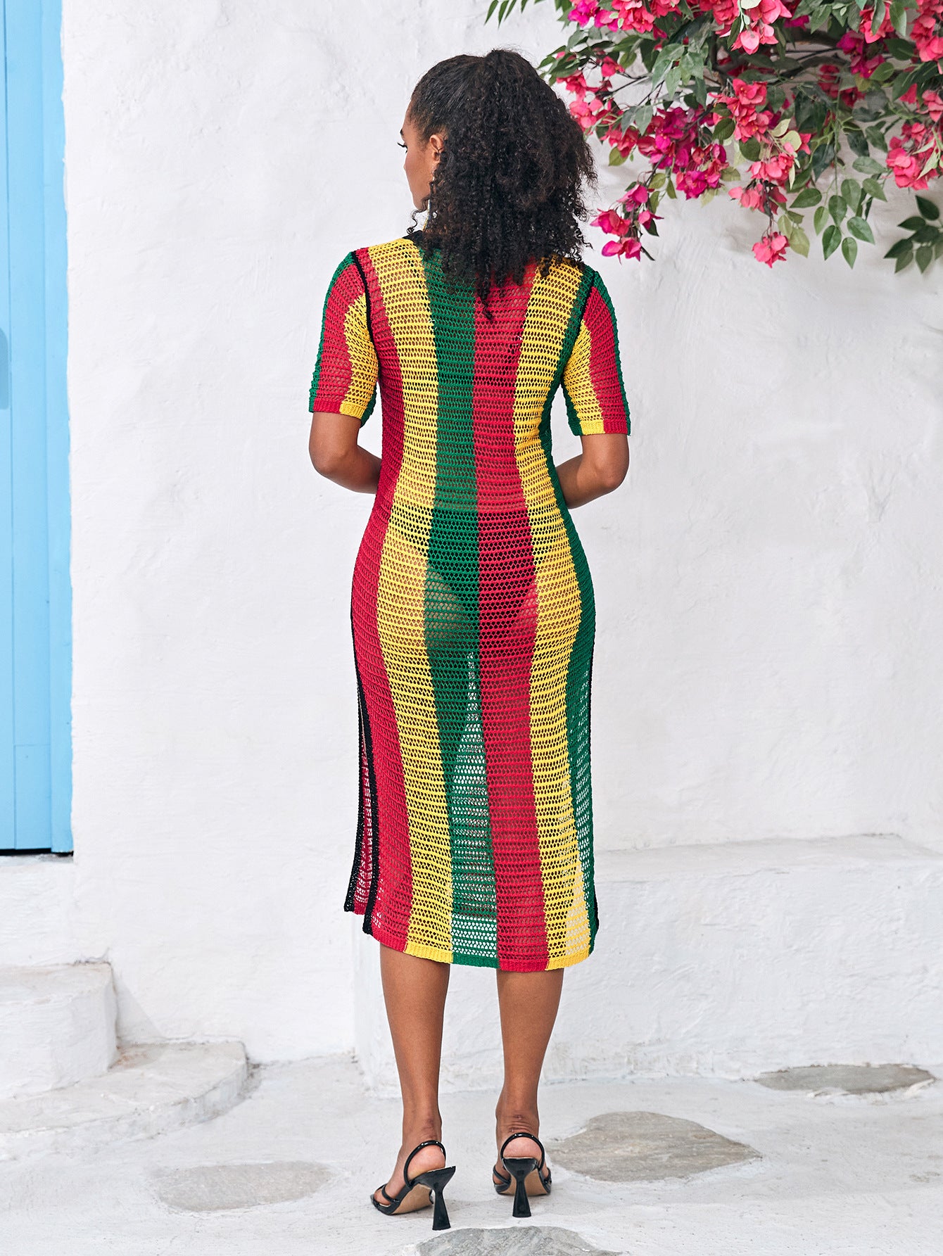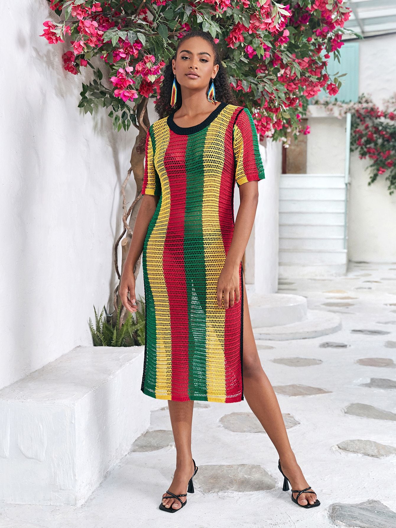 Opdag vores unikke dames åbne strik kjole med farverigt stribemønster fra Stilla, der giver dig et afslappet og samtidig elegant look. Denne særlige kjole kombinerer komfort med stil og er perfekt til solrige dage på stranden eller afslappede eftermiddage i byen.