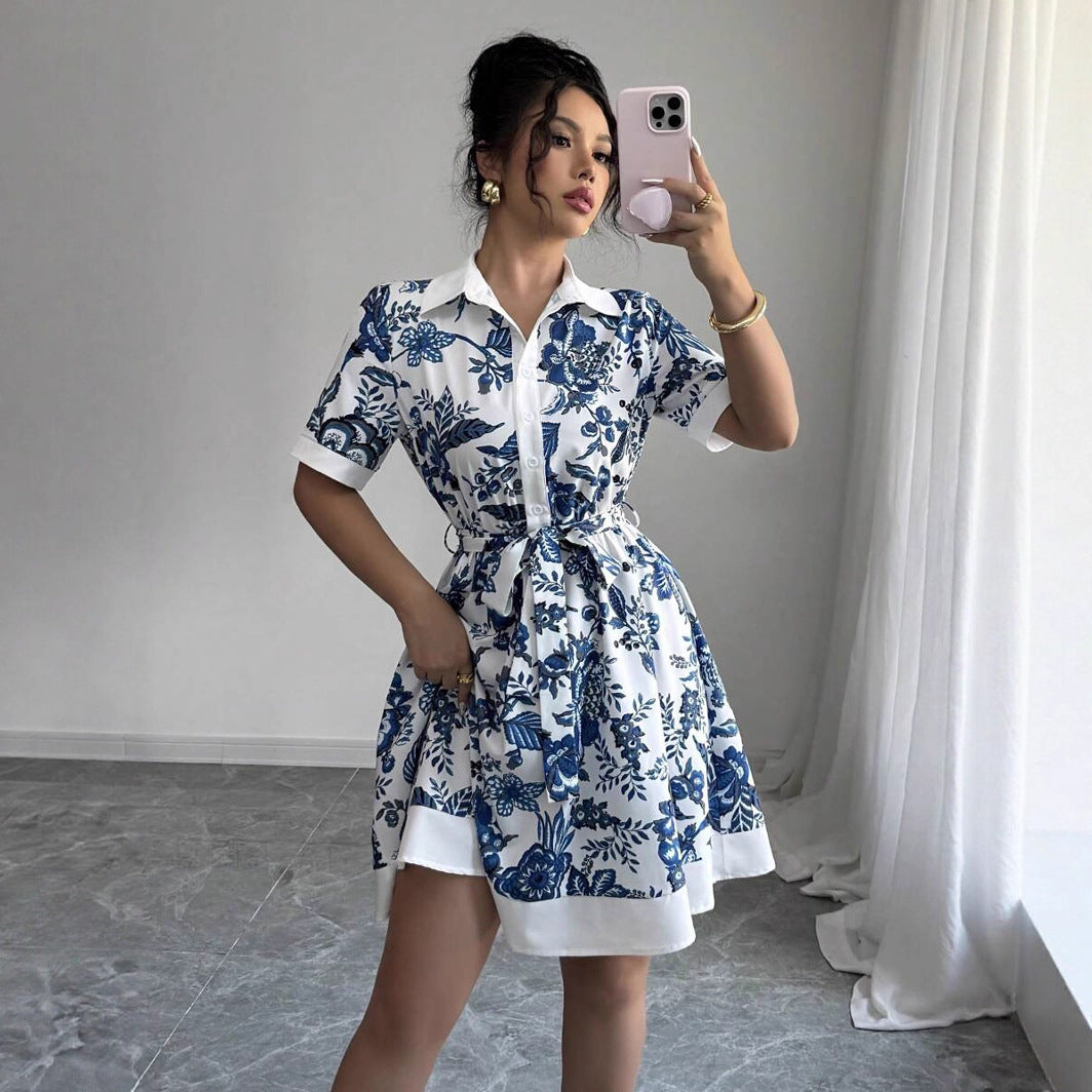- Stilfuldt blomster mønster: Det iøjnefaldende blomstermønster giver kjolen et friskt, feminint præg og sikrer et blikfang.