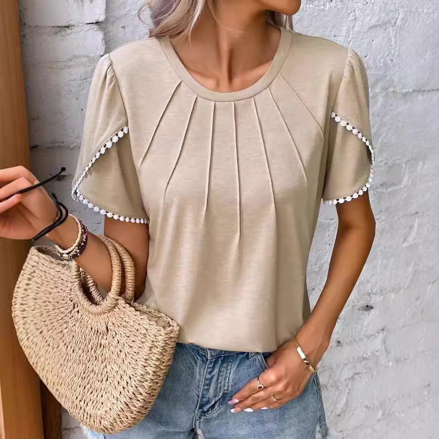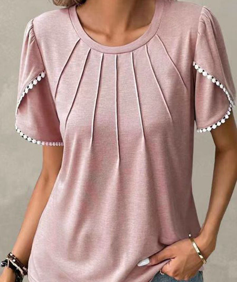 Opdag vores stilfulde dames bluse med dekorative folder og elegante ærmeaccentuer, der forener perfekt komfort og moderigtigt design. Denne bluse er ideel til enhver lejlighed, hvad enten det er på kontoret eller i fritiden.