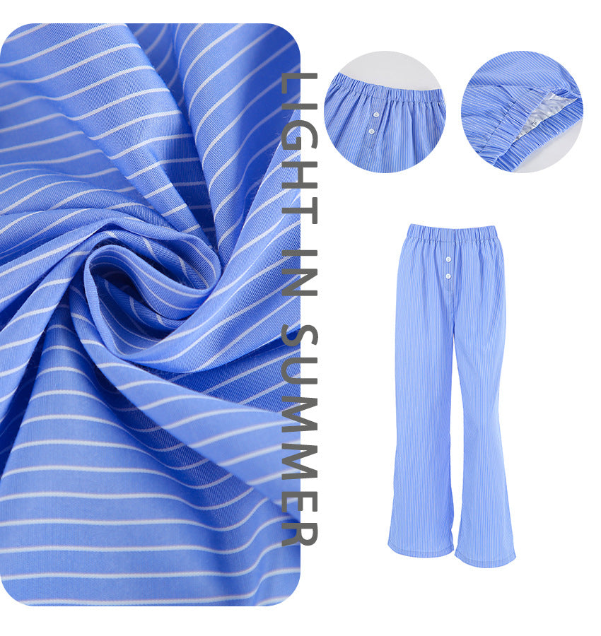 Dame brede stribede bukser lavet af let bomuldsblanding med knapdetaljer Stilla