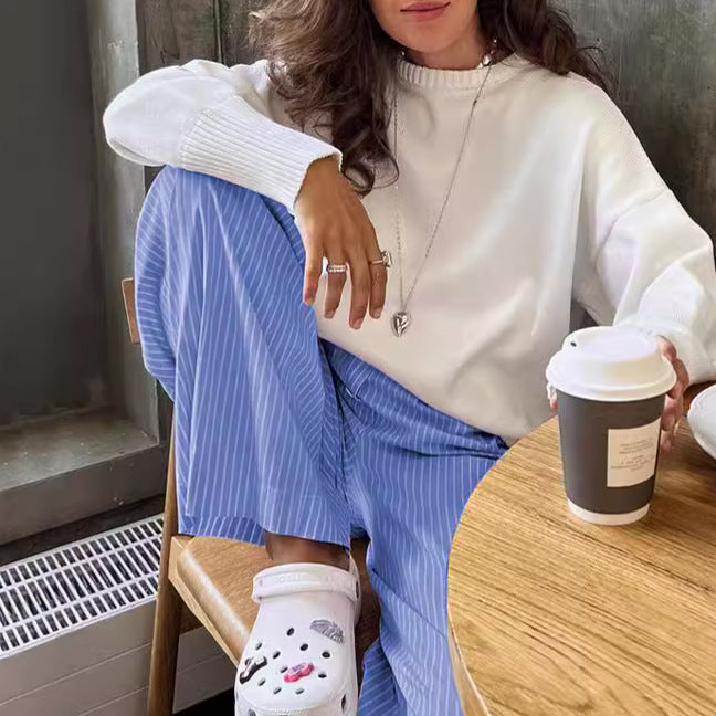 Opdag de vide stribede bukser fra Stilla, som ikke kun står for komfort, men også for stil. Disse bukser er lavet af en højkvalitets, let bomuldsblanding, der er blød mod huden og ideel til varme dage.