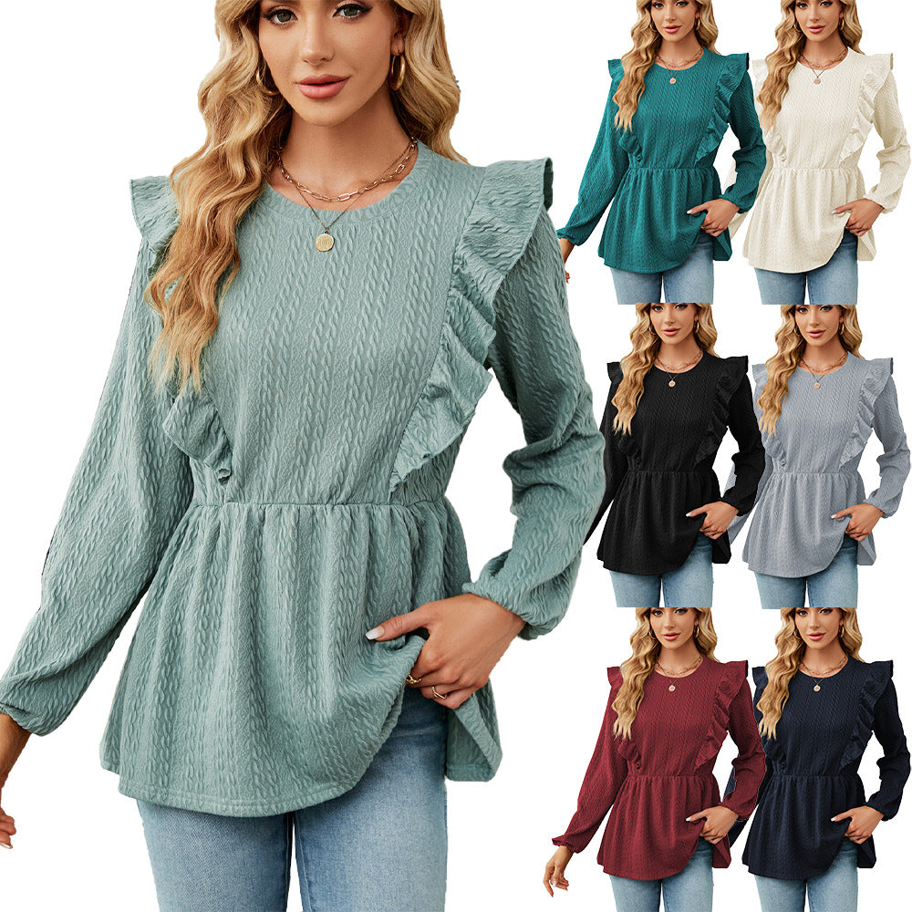 Opdag vores elegante dametop med flæsedetaljer, der er både stilfuld og komfortabel. Denne bluse lavet af materialer af høj kvalitet giver en behagelig pasform og er ideel til forskellige anledninger.